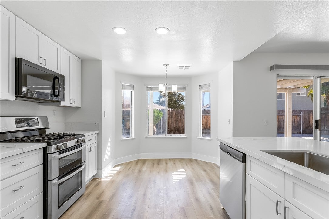 Welcome to 941 Coral Ave, a beautifully remodeled home with style, space, and versatility! The brand-new kitchen features quartz countertops, sleek cabinetry, and a spacious walk-in pantry, perfect for modern living. The floor plan is thoughtfully designed with one bedroom and full bath downstairs, ideal for guests, a home office, or multi-generational living. Upstairs, enjoy the primary suite with ensuite bathroom, plus two additional bedrooms and a spacious full guest bathroom—comfort and privacy for everyone. Outside, the private backyard is your own oasis, complete with a sparkling pool, mature landscaping, and fruit-bearing orange trees. With low taxes, no HOA, and no solar panels to assume, this home is as practical as it is stunning. Located just minutes from stores, restaurants, hospitals, and a nearby golf course, 941 Coral Ave is a rare opportunity in Hemet you don’t want to miss. Schedule your tour today!