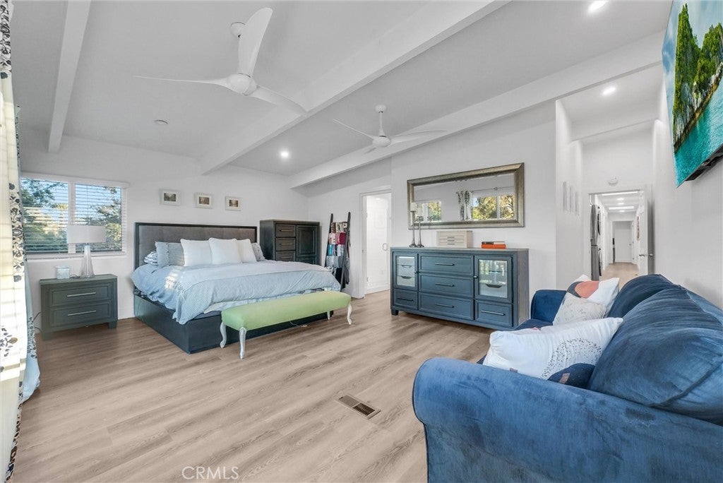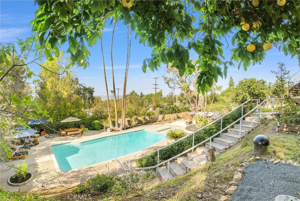Beautifully updated 6 bedroom 5 bath mid-century modern home is ideal for multi-generational living! Tucked away in a private setting, the home welcomes you with vaulted ceilings and dramatic scenery with stunning mountain views. The newer remodeled kitchen serves as the heart of the home, featuring modern cabinetry, quartz countertops, GE Cafe appliances, and a charming breakfast nook with built-in seating. Designed with versatility in mind, the main level includes two bedrooms, a full bathroom, and a separate entrance—creating a private living area ideal for multi-generational living, family, or guests. Upstairs you’ll find the primary bedroom and bath, with 3 additional bedrooms, full bathroom, and access to a wrap-around balcony that offers gorgeous views. Set on a large lot, the backyard is an entertainer’s dream with a large pool, plenty of space to gather, and a newly installed custom outdoor railing. This home is perfect for entertaining and gatherings!!