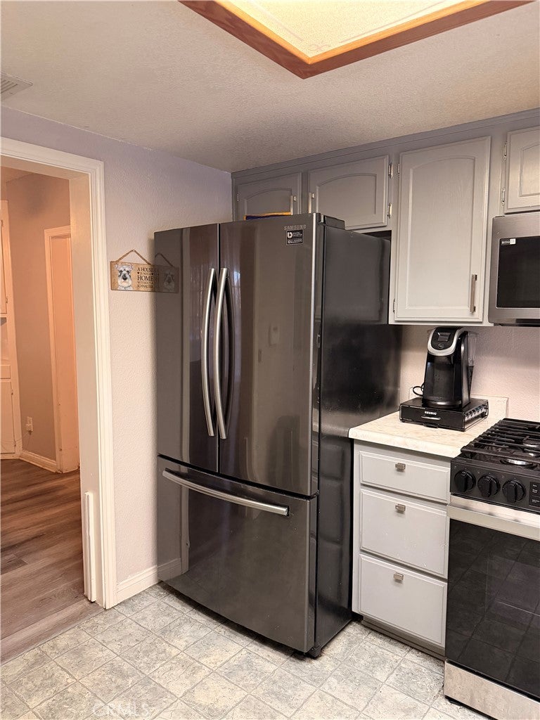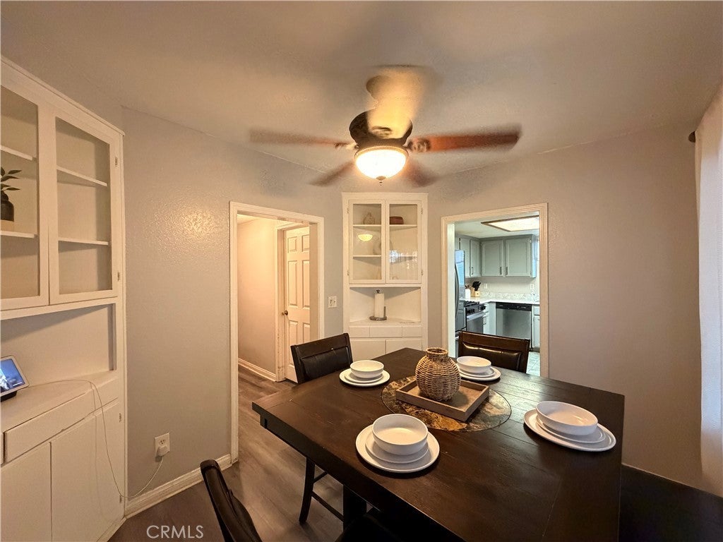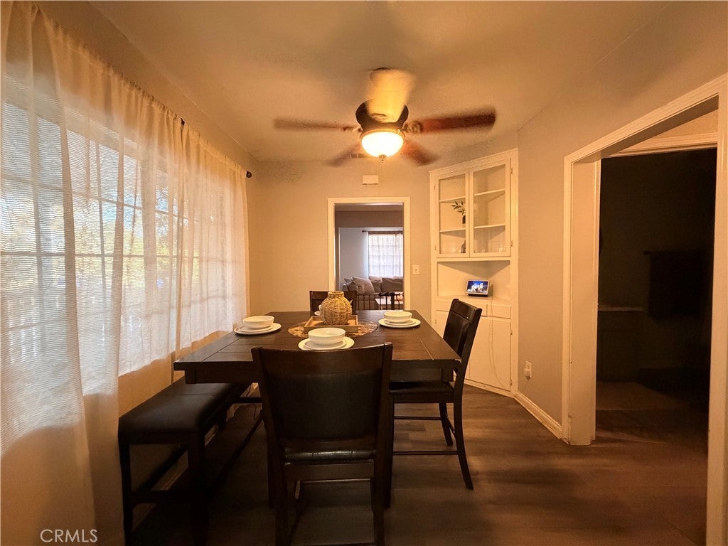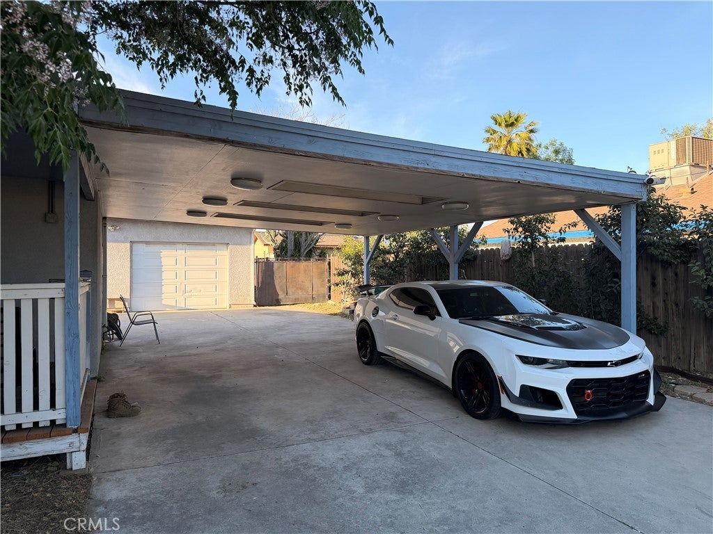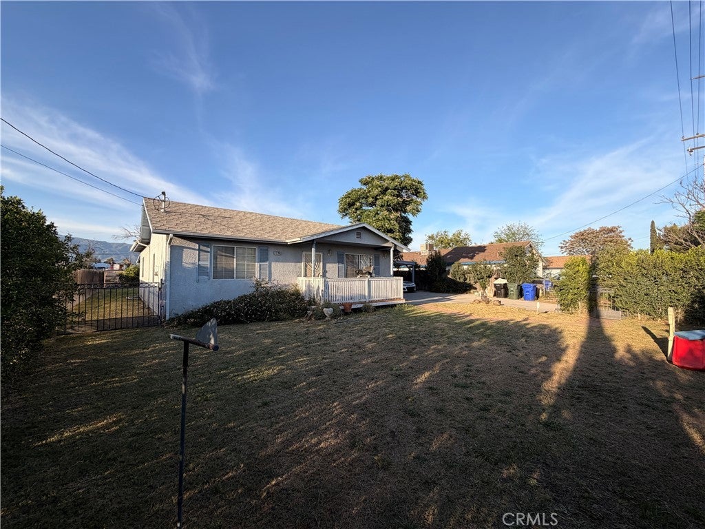 Charming and versatile lease opportunity in Fontana featuring a private, gated front yard lined with mature ficus trees for added privacy, a long driveway with ample parking, and plenty of yard space to enjoy, including a mature orange tree in the backyard. The property also offers three covered patio areas in the front, side, and back, creating multiple outdoor spaces to relax and enjoy. Inside, the main home offers a functional layout with an additional primary bedroom with walk-in closet and attached bathroom for added comfort and convenience. Stainless steel appliances are included, including the refrigerator, stove, and over-the-range microwave, along with washer and dryer. A storage shed next to the garage provides additional utility and convenience. The detached garage adds even more flexibility with two single-car garage doors, a bathroom on the first floor, and a separate upstairs living area featuring another bedroom, bathroom, and small living room. This layout is ideal for a household or extended family that would appreciate flexible space and a little extra separation. Conveniently located near the 10, 15, and 210 freeways, this property offers privacy, functionality, generous parking, and flexible living space in a commuter-friendly Fontana location.