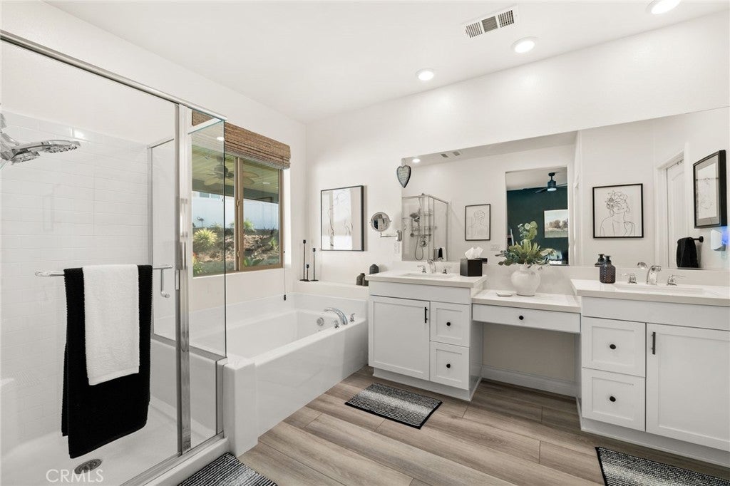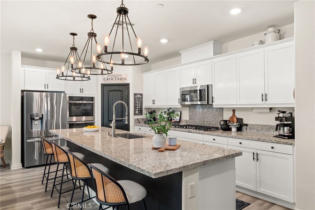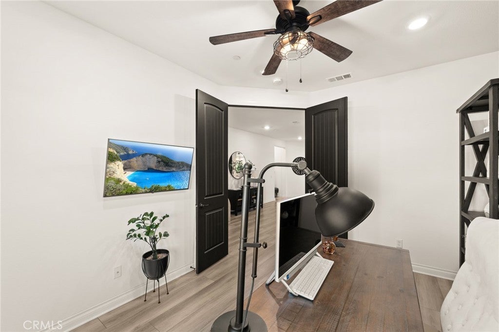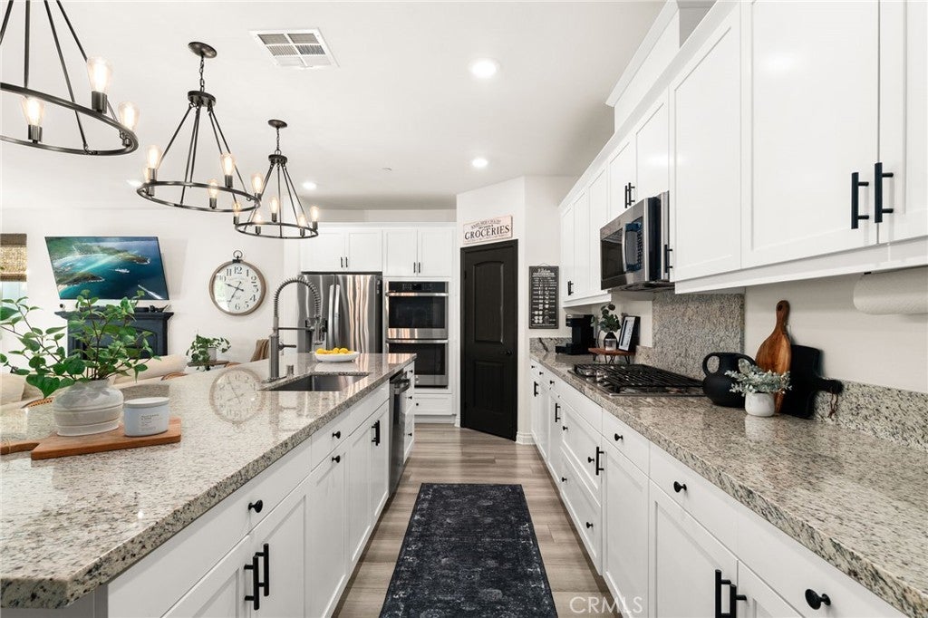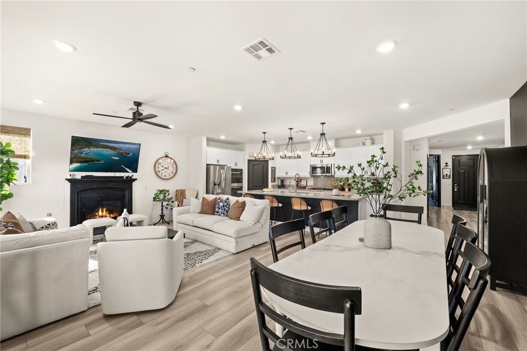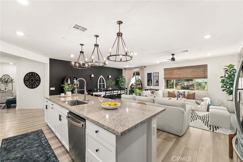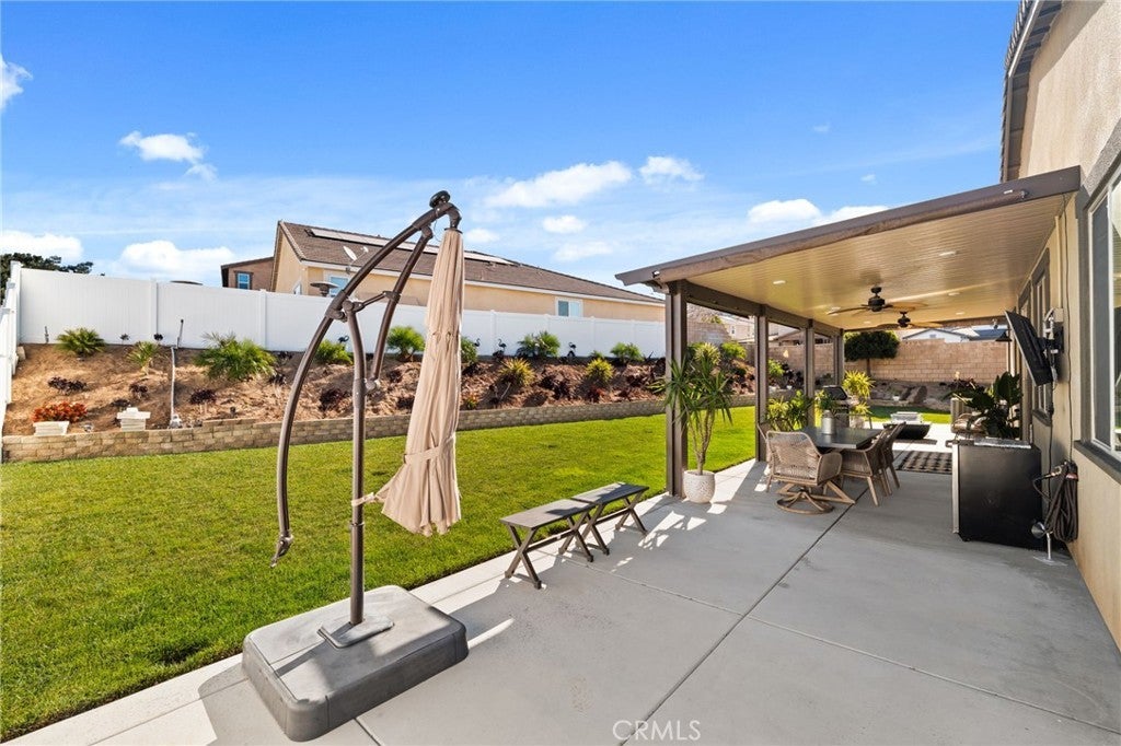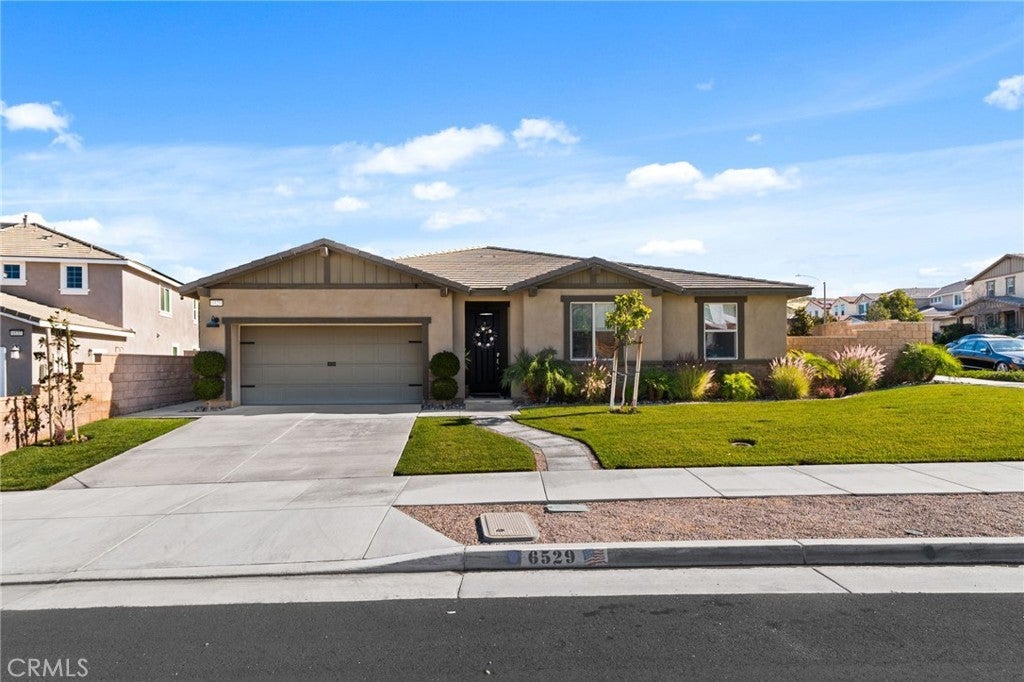 Discover luxury living in this stunning single-story home situated on a desirable corner lot at 6529 Zion Way. Built in 2021, this residence spans 2,137 sq ft and features 3 spacious bedrooms plus a large office that can easily serve as a 4th bedroom, making it perfect for families of all sizes. Step inside to find an inviting open floor plan highlighted by stunning laminate flooring throughout. The chef’s kitchen is a dream, equipped with granite countertops, an oversized island, a double oven, and a 5-burner cooktop—all stainless steel appliances. A generous pantry provides ample storage for all your culinary needs. The interior is enhanced by custom window coverings, elegant custom pendant lighting, and ceiling fans for year-round comfort. New 4-inch baseboards add a stylish touch to the living space. Cozy up in the living area featuring a gas fireplace, perfect for those chilly evenings. The home boasts energy-efficient owned solar panels, making it both eco-friendly and economical. Situated on an expansive 9,844 sq ft lot, this property offers breathtaking views and a beautifully landscaped yard. The exterior is complemented by custom hardscaping, creating a stunning curb appeal. A covered patio with ceiling fans provides a wonderful space for outdoor entertaining. Parking is convenient with the 3-car tandem garage, featuring epoxy flooring and custom built-in racks for efficient storage. This home also includes a tankless water heater, offering on-demand hot water for your needs. Additionally, there is potential for RV parking, making it versatile for those with recreational vehicles. Located in a community with NO HOA, this home integrates modern smart features, ensuring comfort and convenience in your daily life. Don’t miss the opportunity to own a piece of paradise in Jurupa Valley that shows like a model! Schedule your private showing today!