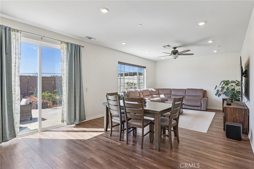 Welcome to this bright and spacious home located in the desirable Obsidian community, offering a thoughtfully designed layout and inviting indoor-outdoor living. The main level features a convenient bedroom and full bathroom with a walk-in shower—ideal for guests or multigenerational living. The open-concept living, dining, and kitchen areas are filled with natural light, creating a warm and welcoming atmosphere. The spacious kitchen showcases fresh white cabinetry, granite countertops, stainless steel appliances, a center island, and ample storage for all your needs. Stylish LVP flooring runs throughout the downstairs, adding both durability and modern appeal. A sliding glass door from the dining area provides easy access to the backyard. Go outside to a generously sized yard with a large patio and garden space, perfect for outdoor entertaining, relaxing, or cultivating your own garden. Upstairs, a versatile loft offers additional living space for a home office, media room, or play area. The primary suite features lovely views, a walk-in closet, and an en-suite bathroom with a dual-sink vanity. Two additional bedrooms share a full bathroom, and a convenient upstairs laundry room completes the second level. Additional upgrades include a whole-house water filtration system and leased solar panels for improved efficiency and comfort. Residents of Obsidian enjoy beautifully maintained grounds with BBQ areas, outdoor picnic spaces, walking paths, a playground, and a dog park—providing a wonderful community lifestyle to call home.