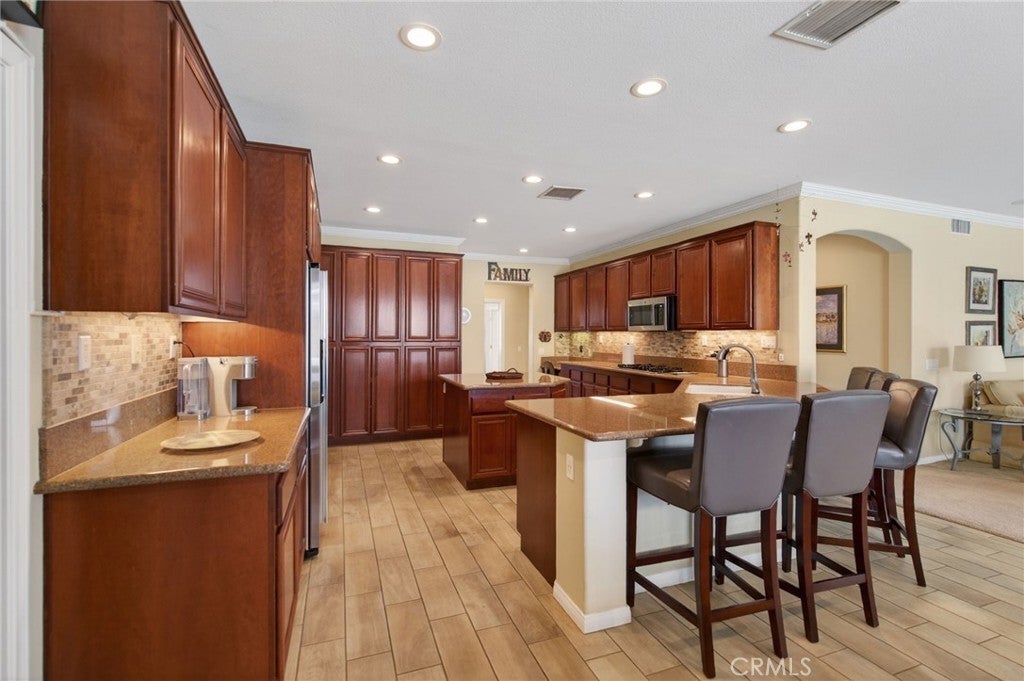 ORANGECREST COUNTRY – STANDARD PACIFIC HOMES Introducing this stunning Plan Three model, offered for the first time by its original owners and in pristine, move-in ready condition! Boasting 6 bedrooms, 4 bathrooms, and an optional home theater, this home blends elegance with functionality in one of the most sought-after neighborhoods. Step inside to discover a thoughtfully designed layout. The formal living room impresses with its soaring two-story ceiling, while the expansive family room flows seamlessly into a dining area and a spacious island kitchen—perfect for entertaining or everyday living. A secluded downstairs guest suite offers privacy, and the study off the foyer, with secondary access through the Butler’s Pantry, can easily transform into a formal dining room to suit your needs. The home theater is fully equipped with a projector, screen, and seating, ready to elevate your family movie nights. Upstairs, you’ll find four additional bedrooms, including the luxurious primary suite featuring a spa-like bathroom, dual closets, one a walk-in, and an abundance of storage. Practicality meets convenience with a dedicated laundry room and a massive under-stair storage area. The backyard is a true retreat, showcasing a custom-designed Bogner swimming pool and spa, a large grassy play area, and a side paved section—perfect for a half-court basketball setup if desired. The mature landscaping creates a private oasis, while the home’s location at the end of a desirable cul-de-sac is just steps away from the award-winning Kennedy Elementary School. This home is an absolute delight—don’t miss the opportunity to make it yours!