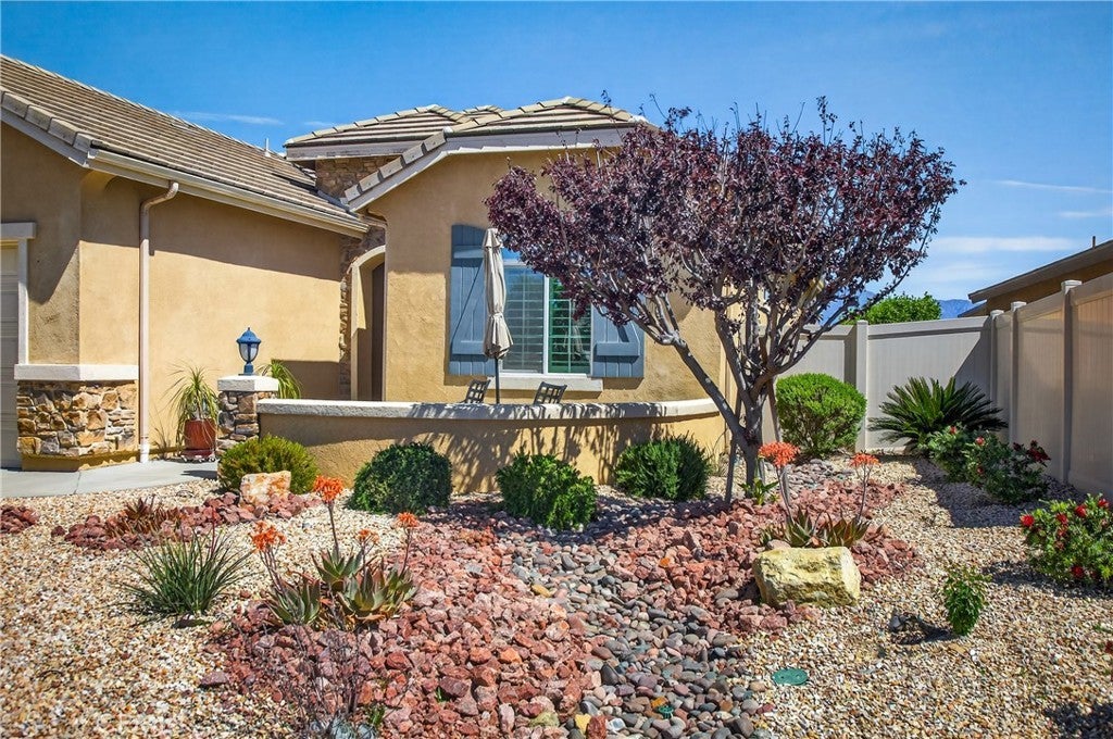 Discover resort-style living at its finest in this charming single-family home located at 346 Mock Bluff within the highly sought-after Four Seasons at Beaumont, a premier gated 55+ active adult community in Beaumont, California. Built in 2018, this inviting residence offers approximately 1,859 square feet of thoughtfully designed living space, featuring 2 bedrooms, 2 bathrooms, a versatile den/office/craft room, and a convenient bonus storage room. The flexible den provides the perfect space for a home office, creative crafting area, or quiet reading nook while the additional bonus storage room offers ample space for seasonal items, hobbies, or extra belongings-making everyday organization effortless. Step inside to find an open, modern floor plan perfect for comfortable everyday living and effortless entertaining. The standout feature of this home is its unobstructed mountain views from the backyard. Wake up to breathtaking vistas of the surrounding San Gorgonio and San Jacinto Mountains, and enjoy serene sunsets or peaceful mornings right from your own private outdoor space—ideal for relaxing, gardening, or hosting gatherings while taking in Southern California’s natural beauty. Residents of Four Seasons at Beaumont enjoy world-class resort-style amenities, including a clubhouse, fitness centers, three spas, three pools, walking trails, and a vibrant calendar of social activities, all within a secure, gated environment. The community is nestled in the scenic San Gorgonio Pass area, offering a tranquil setting with convenient access to shopping, dining, medical facilities, and major highways for exploring the Inland Empire and beyond. Whether you’re seeking a low-maintenance retirement haven or an active lifestyle surrounded by stunning natural views, this Mock Bluff home delivers comfort, location, and endless enjoyment in one of Beaumont’s most desirable 55+ neighborhoods. Don’t miss the opportunity to make this your new home!
