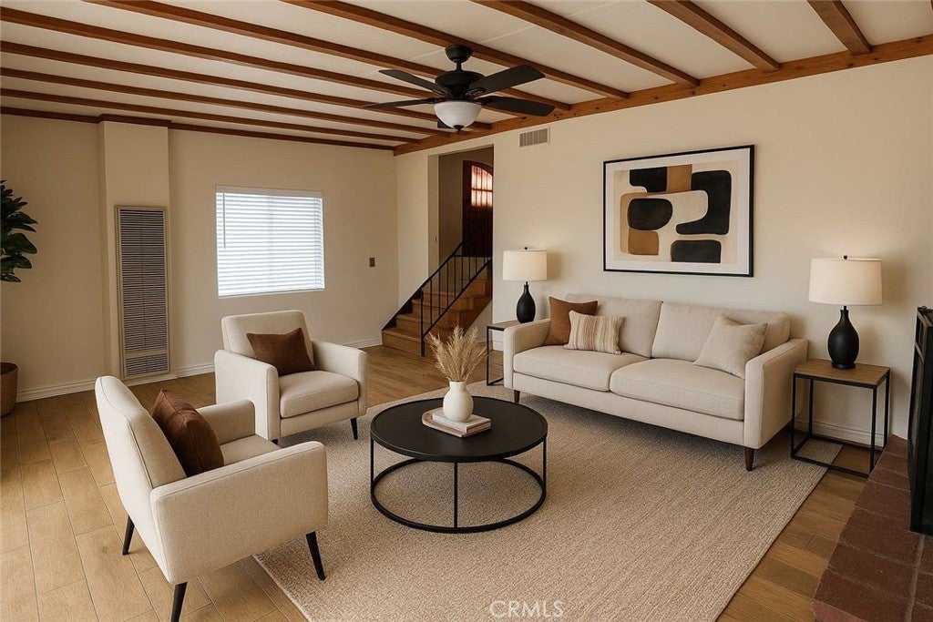 Charming home in desirable location! Kitchen and bathroom have been upgraded. Original hardwood floors have been refinished. Central heating and air-conditioning. New roof and water lines repiped. Large living room with fireplace and shaded patio are great for entertaining. New landscaping in backyard with automatic drip system, fruit trees. New paver stone driveway and walkway. View of City lights and great view of mountains. Connected to Public Sewer. Convenient location to schools and freeways. Plenty of parking and enough space for an ADU to be added to the back of the property, and will provide a conceptual design of a 2 Bedroom, 2 Bath ADU upon request.