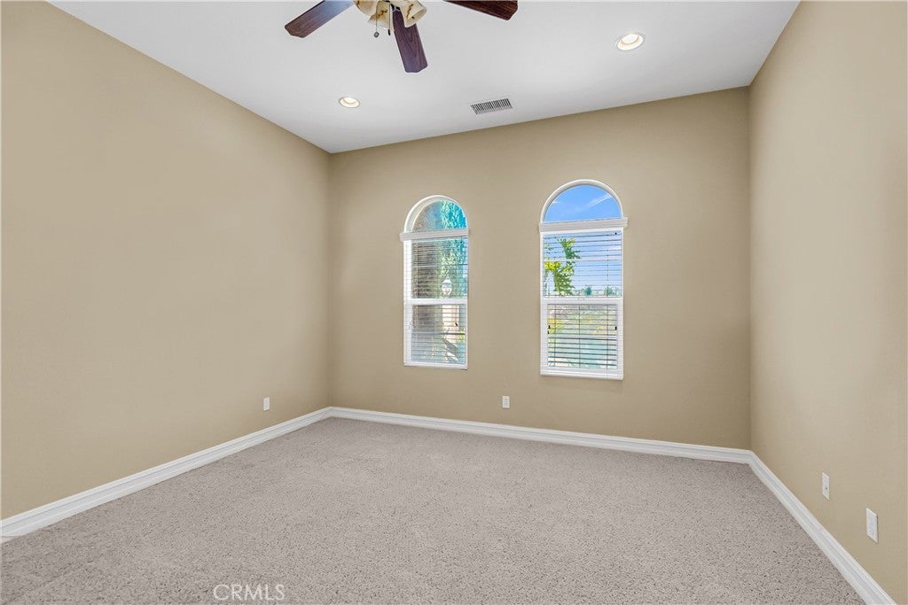 Luxury Living Meets Scenic Serenity in Stellan Ridge - Welcome to this exceptional single-story 4-bedroom plus office, 3.5-bathroom residence in the highly sought-after Stellan Ridge community of Alessandro Heights. Thoughtfully designed for multigenerational living, this spacious home offers the ideal balance of comfort, elegance, and functionality—all set against the backdrop of breathtaking views. The courtyard entry welcomes you inside to an airy, open-concept layout where natural light pours through expansive windows, illuminating the living, dining, and kitchen areas. Whether you're hosting intimate gatherings or lively celebrations, the modern chef’s kitchen—with its granite countertops, stainless steel appliances, and oversized island—serves as the heart of the home. Two walk-in pantries, a butler's pantry and abundant cabinetry make storage effortless. The luxurious primary suite is a private sanctuary, complete with a spa-inspired en-suite bath featuring dual vanities, a jetted tub, separate shower and a generous walk-in closet. Three additional bedrooms provide comfort and space for family or guests, while the dedicated office offers privacy for work or study. The finished, air-conditioned 3-car garage—with built-in cabinetry—is perfect for a home gym, workshop, or climate-controlled storage. Additional upgrades and recent improvements include a new hot water heater, new AC condenser, Flow-Tech water conditioning system, air purification, reverse osmosis system and so much more! Set on a sprawling 1.25-acre lot on a quiet cul-de-sac, the backyard is a blank canvas ready for your dream outdoor oasis—an ADU, pool, or lush garden retreat. The lot extends beyond the driveway to include a spacious pad that awaits development. Enjoy the tranquility of this family-friendly neighborhood, with easy access to parks, top-rated schools, and everyday essentials. This is more than a home—it’s a lifestyle. Don't miss your opportunity to make it yours.