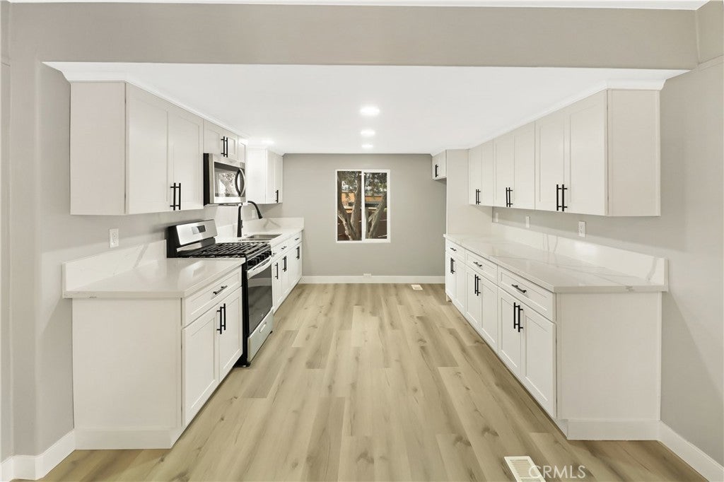 Welcome to this charming manufactured home in the heart of Cabazon, CA. This remodeled vintage gem features 3 bedrooms, 2 bathrooms, and approximately 1,400 +/- square feet of comfortable living space. The interior offers an updated kitchen with abundant cabinetry, ample counter space, and new stainless steel appliances—truly a generously sized kitchen. Flooring has been upgraded to wide plank laminate throughout. Both bathrooms have been remodeled with tub/shower combinations. Rare indoor laundry room adds everyday convenience. Home is equipped with two mini-split systems for efficient temperature control. Outside, the spacious yard provides room to relax, play, or entertain. Features include a covered patio area, mature shade trees, and a peaceful outdoor setting. Covered parking helps protect vehicles from the elements. Located in a quiet, rural setting with nearby elementary school, library, and community center. Just minutes from Desert Hills Premium Outlets, Morongo Casino, Arrowhead Water Facility, and with easy access to the I-10 freeway. Palm Springs is a short drive away for additional shopping, dining, and entertainment. Schedule your private showing today.