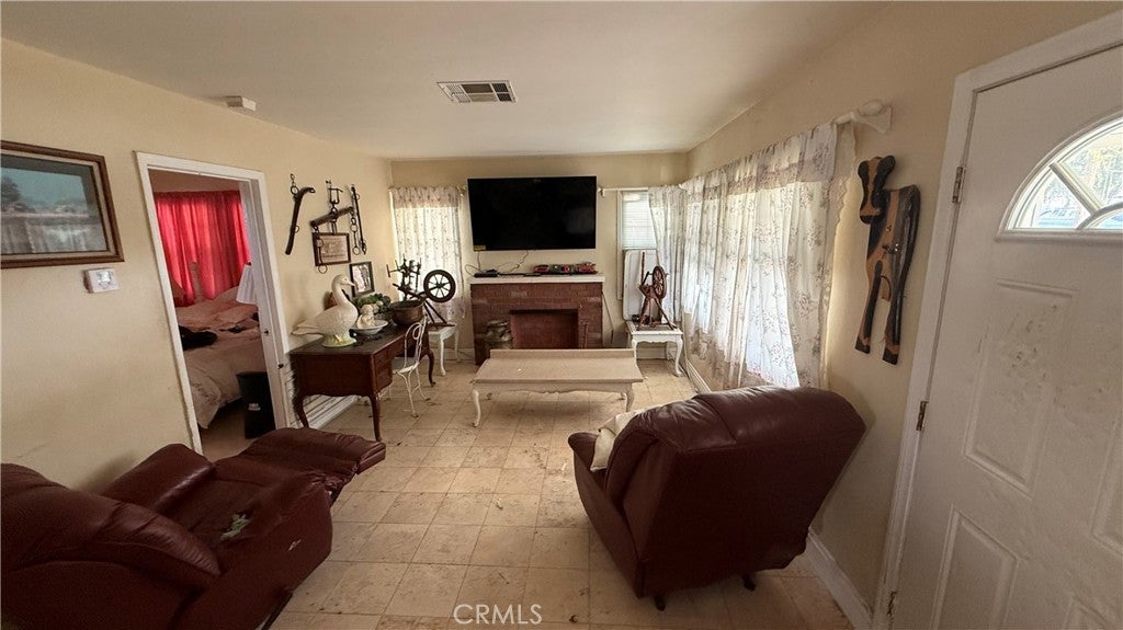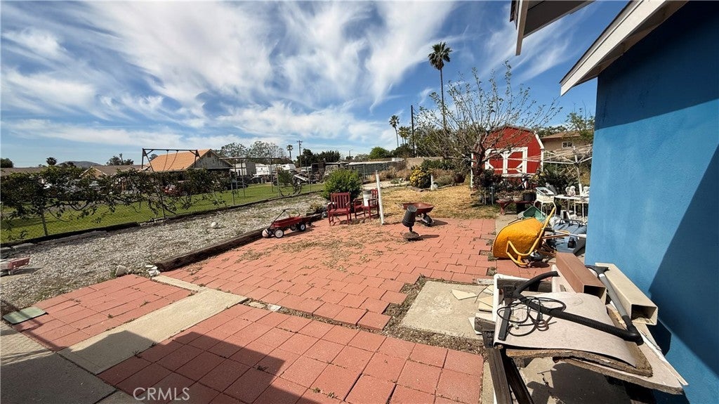 Full of personality and brimming with potential, this storybook blue cottage is a rare find in the heart of Fontana's established Laurel Avenue corridor. Set on a generous 10,000 square foot lot, this 942 sq ft home offers the kind of outdoor space that's nearly impossible to find at this price point, with room to expand, entertain, or invest. The covered front porch welcomes you with classic charm, complete with hanging planters and porch swings that give the property undeniable curb appeal. Inside, the bright living room features tile flooring, a cozy brick fireplace, and large windows dressed in flowing curtains that fill the space with natural light. The galley-style kitchen is well-appointed with granite countertops, white cabinetry, a stainless steel French door refrigerator, and a gas range perfect for any home cook. The home is currently configured as one bedroom with a flex room that offers strong potential to serve as a second bedroom, office, or hobby space. The updated bathroom features wood-look flooring, a walk-in shower, and a cabinet vanity. Step outside and the true value of this property reveals itself, with a large brick paver patio, a detached red barn-style storage shed, mature trees, rose bushes, and a fully enclosed yard with ample parking along the long driveway. The property also includes central A/C and plenty of room to explore ADU potential on the expansive lot. Whether you're a first-time buyer, an investor, or simply someone who wants space to breathe, this charming Fontana cottage delivers character, comfort, and opportunity all in one.