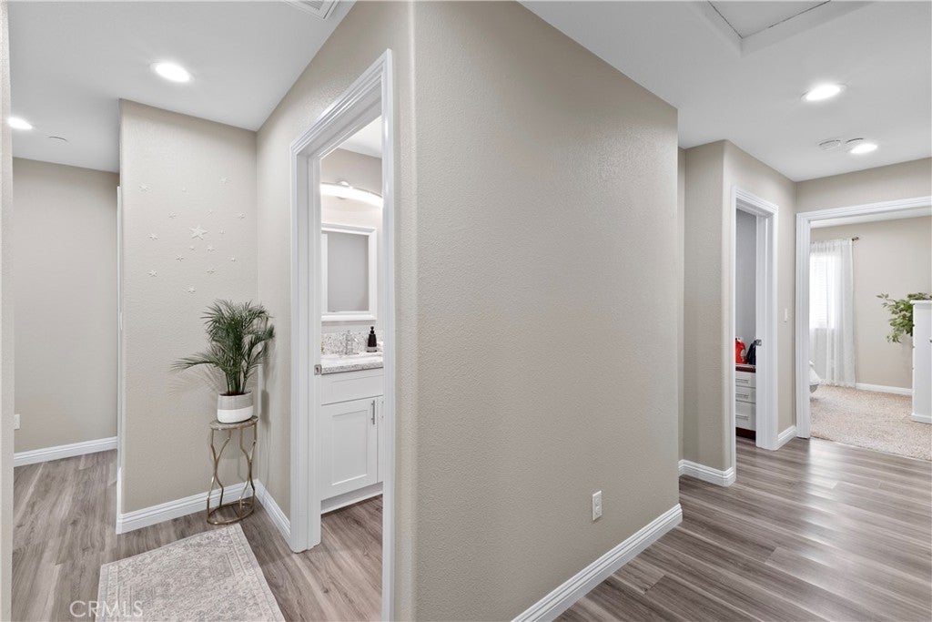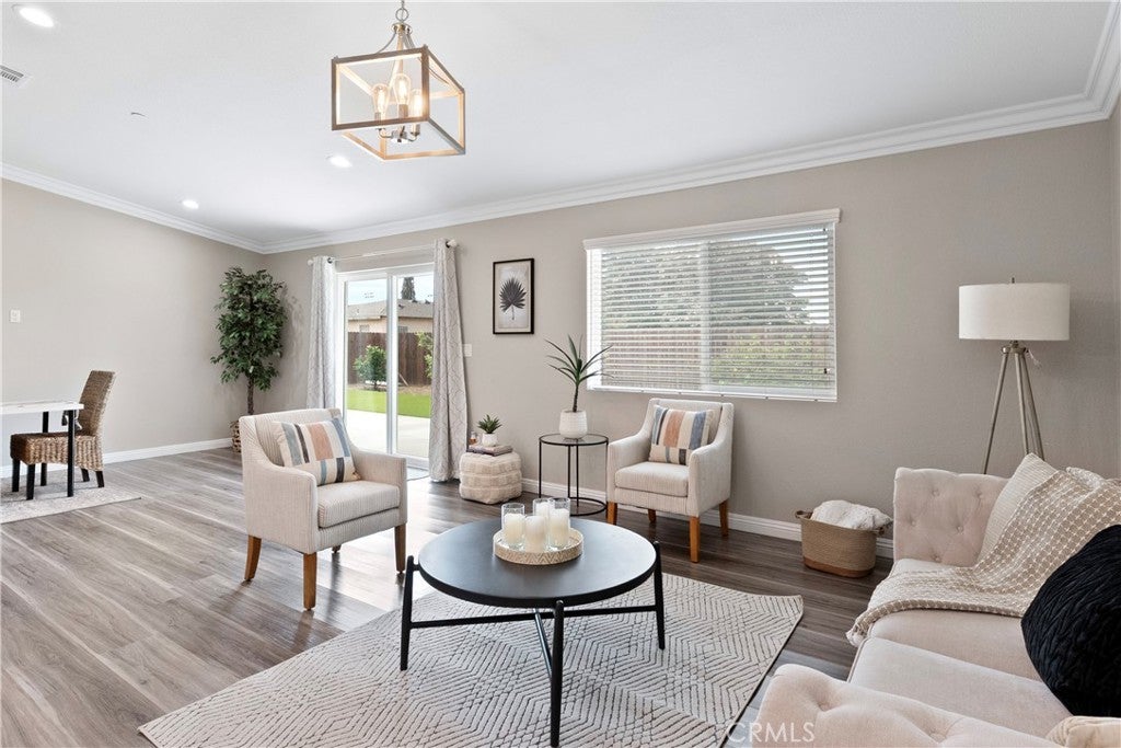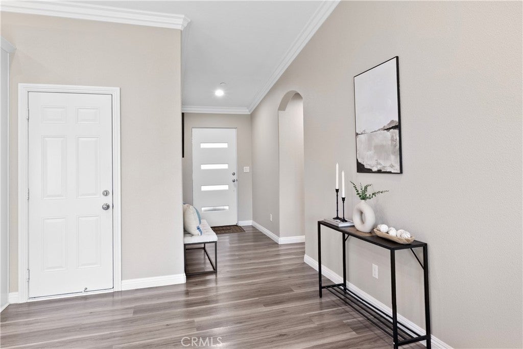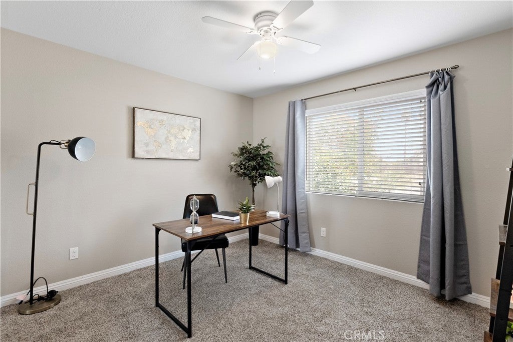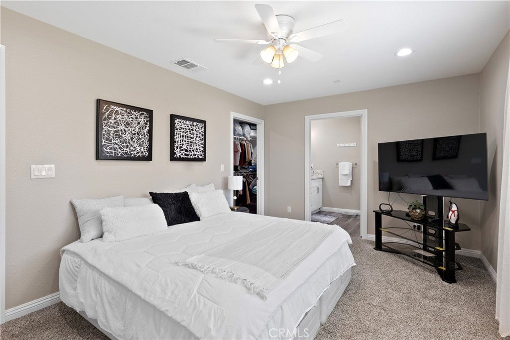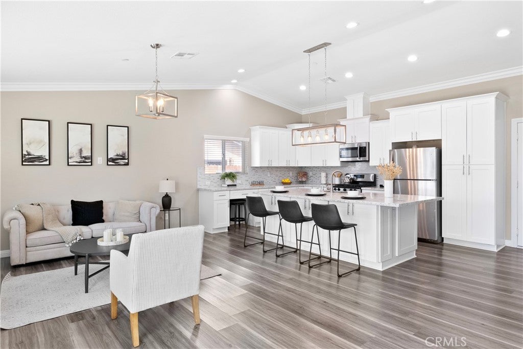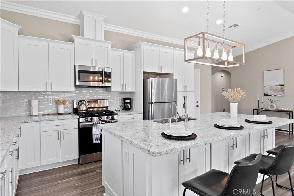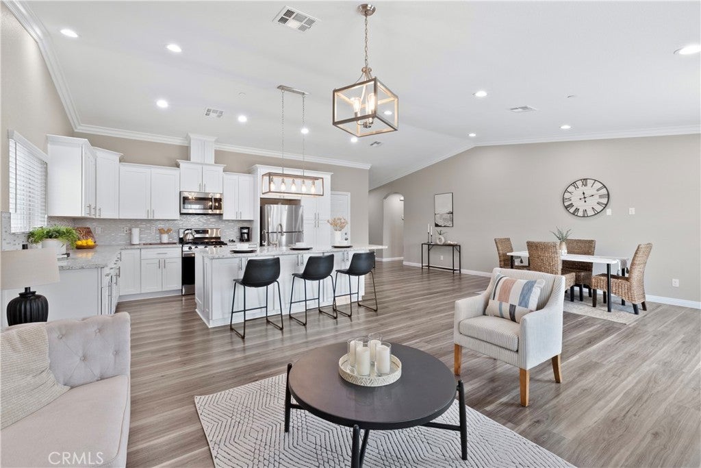 Built in 2019, this single-story Riverside home offers a functional layout with modern finishes and low-maintenance features. The home includes 4 bedrooms and 2 bathrooms, along with a 2-car attached garage, and a design that connects the main living spaces for everyday use and entertaining. The kitchen features white cabinetry, quartz countertops, stainless steel appliances, and a center island that opens directly to the living room. There is also a designated dining area along with a breakfast bar at the kitchen counter for additional seating. Vinyl flooring runs throughout the main living areas, providing durability and easy upkeep, while all bedrooms are carpeted and include ceiling fans. The primary bedroom offers a comfortable layout with carpet flooring, a walk-in closet, and an en-suite bathroom that includes a walk-in shower with tile wall surround. A separate laundry room adds convenience and keeps utility space tucked away from the main living areas. The backyard is designed for low maintenance, featuring a concrete patio area just outside the home and artificial turf in the rear yard, helping reduce water usage while still offering usable outdoor space. This home is just minutes from the 91 Freeway, with nearby shopping, dining, and access to the orange groves along Victoria Avenue. This property offers a practical combination of location, layout, and modern features. Make this great home yours today!