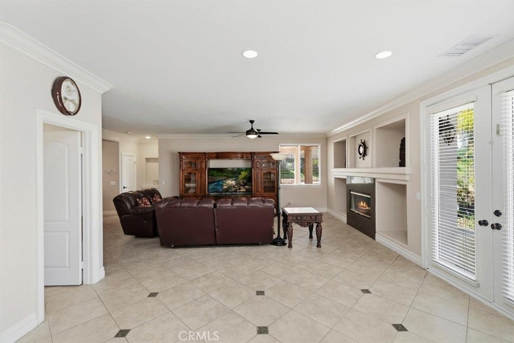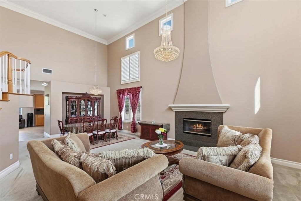 Stunning Creekside Estate in the community of Mockingbird Canyon. This turnkey residence offers 4,090 sq. ft. of living space, featuring 5 bedrooms and 4 bathrooms, all situated on 1.50 acres of beautifully maintained land. Double-door entry welcomes you into a striking interior with a tiled foyer enhanced by elegant granite inlays. The home showcases expansive formal living and dining rms. centered around a spectacular fireplace. A dramatic dual staircase adds architectural charm. Designed for comfort and flexibility, the home features two primary suites, including a desirable main-level suite complete with gorgeous wood flooring, a private slider leading to the backyard, and an ensuite bath with dual sinks, tub and shower combo, with a walk-in closet. The heart of the home is the expansive kitchen, offering granite countertops and backsplash, a large center island with breakfast bar, black appliances, and a walk-in pantry. The kitchen opens to the spacious family rm. highlighted by a cozy gas fireplace. Upstairs, the luxurious primary suite features double-door entry, a private sitting area, and an enclosed balcony for peaceful retreat. The spa-inspired ensuite bath includes granite counters, a Jacuzzi tub, separate shower, dual sinks, and two vanities. His & Her walk-in closets. Three additional generously sized guest bedrooms and a full hall bath complete the second level. This home is loaded with upgrades including plantation shutters, crown molding with detailed window casings, 6-inch baseboards, wainscoting, custom paint, ceiling fans, solar, and instant hot water. Step outside to your own private resort-style oasis. The backyard boasts an expansive Bogner pool and spa with a stunning waterfall, all remote-controlled with accent lighting. Enjoy outdoor living with a large built-in barbecue featuring a 48-inch grill, stamped colored concrete and a Bose outdoor sound system. The property is fully enclosed with split-face block walls and beautiful iron gates, offering both privacy and security. Additional features include gated RV parking, a 4-car garage with epoxy flooring, and an orchard with a wide variety of producing fruit trees including lemon, lime, jujube, guava, soursop, pomegranate, avocado, orange, peach, plum, grapefruit, sugarcane, loquat, and dragon fruit. Mature landscaping creating a serene and picturesque setting. This exceptional property truly reflects pride of ownership and offers the perfect blend of luxury & comfort.