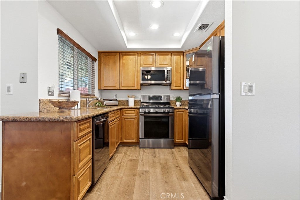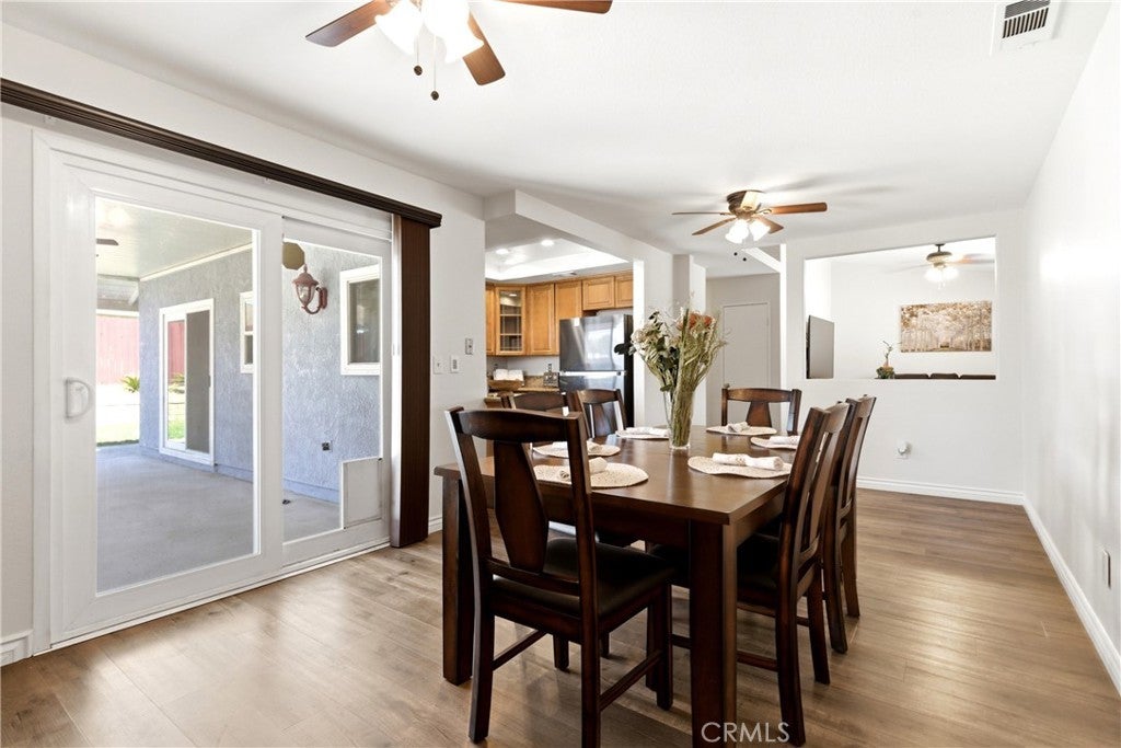 Welcome to 3181 Wishing Well Ct in Jurupa Valley—a beautifully upgraded, turnkey single-story home tucked away on a quiet cul-de-sac, offering the perfect blend of comfort, style, and convenience—with no HOA. This 3-bedroom, 2-bathroom home features luxury vinyl flooring throughout the main living areas, plush carpet in the bedrooms, and updated dual-pane windows for energy efficiency. Ceiling fans throughout and a smart Nest thermostat provide year-round comfort, while the freshly painted interior creates a bright, move-in-ready feel. The exterior is enhanced with premium luxury paint, adding to the home’s impressive curb appeal. The kitchen is both stylish and functional, complete with granite countertops, stainless steel appliances, and recessed lighting—ideal for everyday living and entertaining. Both bathrooms have been tastefully updated with modern finishes. Step outside to a low-maintenance front yard with artificial grass and a welcoming covered front porch with beautiful mountain views. The backyard is perfect for relaxing or entertaining, featuring an Alumawood patio cover and private sliding door access from the primary suite. Additional highlights include RV parking and a prime location within walking distance to a community park. Conveniently located just minutes from the 60 freeway, with easy access to the 210, 15, and 10 freeways. Also just minutes from Ontario Int’l Airport, Ontario Mills, and Toyota Arena, with a short drive to Victoria Gardens and Eastvale shopping centers—making commuting, travel, dining, and shopping effortless. This turnkey home truly has it all—don’t miss your opportunity to make it yours.