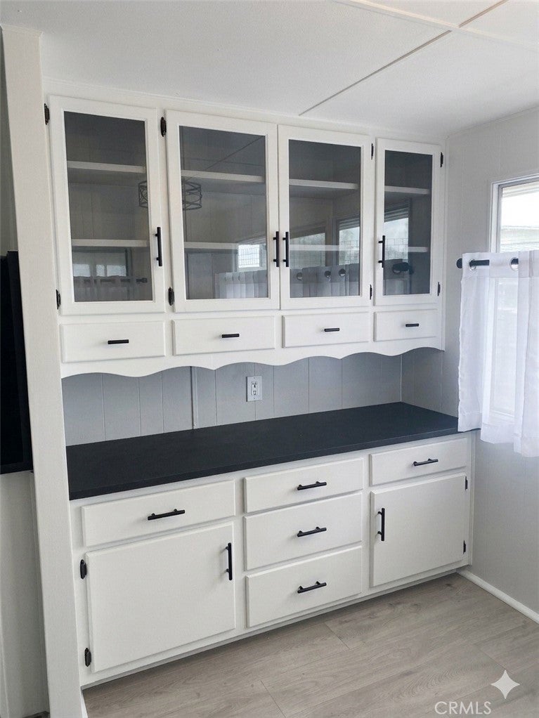 $395/month space rent. Read that again. That's one of the lowest in Northview and one of the lowest in all of Yucaipa's 55+ communities. Water, sewer, and trash are billed through the park separately. Gas and Electric go directly to you. Now walk inside this great North Bench home. Every surface has been refreshed top to bottom by a licensed General Contractor. New Mohawk luxury vinyl plank flooring runs through virtually every room. Fresh dark countertops, a new stainless sink with disposal, and a breakfast bar that brings the kitchen and living space together into one open concept, the way people actually want to live. Crisp white cabinetry with decorative scallop detailing and matte black hardware fills the kitchen floor to ceiling. A full-size built-in china hutch with glass-front doors anchors the dining area. And then the space hits you. Pop-out expansions running virtually the entire length of the home push it to a full 20 feet wide. HCD registers it as a single-wide… you get the benefit of reduced registration fees every year, but it lives like a double. You feel it the moment you step into the great room. Vaulted ceilings. Modern ceiling fans. Light pouring in from every direction. This is not the mobile home you're picturing. This is the one that changes your mind. Two bedrooms sit side by side off a private hallway. Both feature gray accent walls and built-in closet systems with sliding doors and drawer storage underneath. The master takes it further with closets spanning two full walls, floor to ceiling. No furniture needed. Central heat and air to keep you comfortable year-round. The bathroom is clean and bright with easy-care flooring in a classic tile pattern, a maple vanity with framed mirror, walk-in shower with sliding glass enclosure, and a linen cabinet built right in. Step out the sliding glass door onto an 80 sq ft composite deck and you're looking directly at the clubhouse and pool. Mountain views behind you. Covered carport beside you. A dedicated utility room with inside laundry hookups and water heater, plus enough room to keep everything organized and out of sight. Pets welcome. RV parking available. Financing available for qualified buyers. $1,500 appliance credit included for range, hood, and microwave. Section 1 termite clearance provided. Move-in ready. Call or text John for a private showing.
