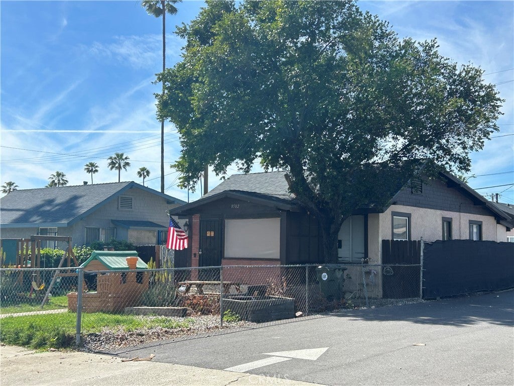 Opportunity awaits. Located in the city of Fontana, 2 Homes on 1 lot near downtown Fontana. The front house has 2 bedrooms, 1 bath, a small front porch, a gated front yard, and includes a separate conversion/back house; the back porch area is shared with the back house. The back house has 1 bedroom and 1 bath, plus a small office space. A one-of-a-kind spot to do more than just live. Business shops are located around the property, and public parking is right next door. Great location near shopping, public transportation, a train station, a nearby middle school, a post office, city hall offices, and community centers and fire department. Property zoned WMXU- walkable mixed-use, and is in the opportunity zone. This home offers a great opportunity, making it perfect for investors or buyers seeking a strong investment. This is also a great opportunity for creative thinkers to provide services to the local community and live on-site. This is a great home with a guest house in the back for family or friends.