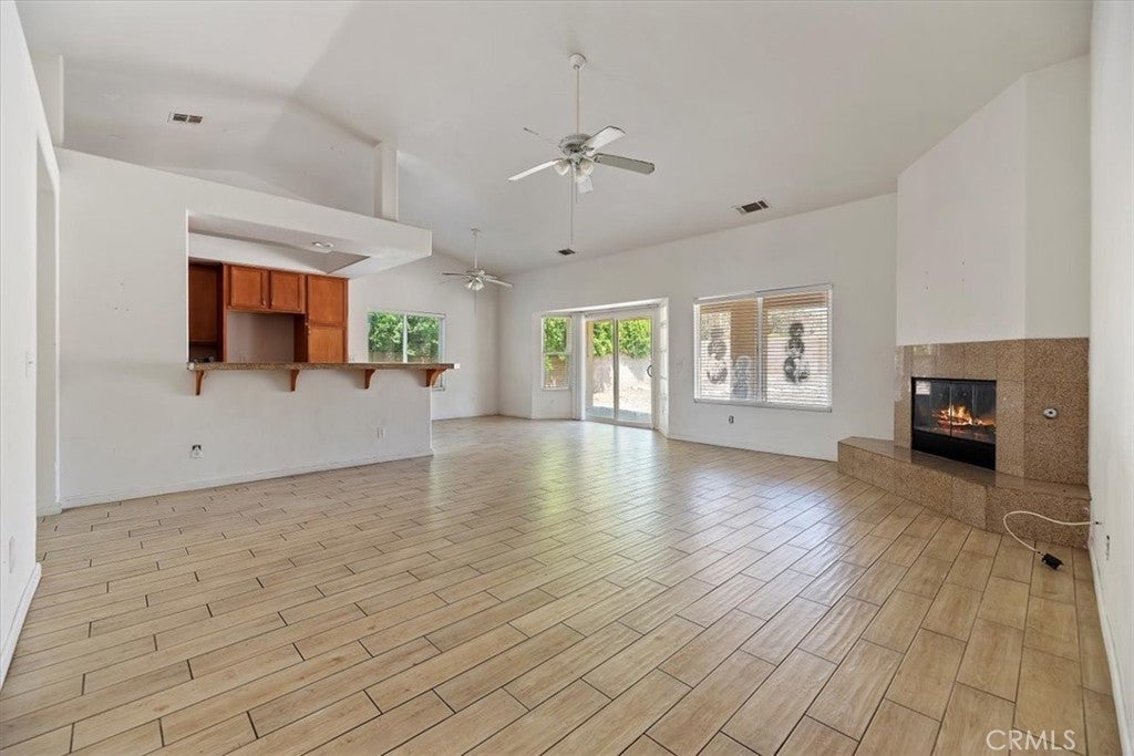 DRASTIC REDUCTION, OWNER MUST SELL! This inviting 1,837 sq. ft. home, built in 2005, offers comfortable living with beautiful desert mountain views. The open floor plan features attractive plank-look tile flooring in the main living areas and warm wood-look laminate in the bedrooms, providing easy, low-maintenance style throughout. High volume ceilings add a spacious feel, while a cozy fireplace creates a welcoming focal point. The bright open space, well-appointed kitchen is equipped with polished granite countertops, stainless steel appliances, a breakfast bar and generous cabinet space. The spacious primary bedroom includes a walk-in closet, double sinks, and an updated bath surround for a fresh, modern touch. Two additional bedrooms and a full guest bath offer flexibility for family, guests, or a home office. Enjoy the outdoors from the covered front porch or the private, block-walled backyard with a roomy patio—perfect for relaxing or entertaining. Additional features include a two-car garage, central air, and a durable tile roof. Located in the desirable Wardman Heights area, just a short drive from Mission Lakes Blvd. Located just north of Palm Springs, Desert Hot Springs is renowned for its naturally occurring hot mineral springs. The area features luxurious resorts and wellness spas that draw from these geothermal aquifers, offering a unique desert retreat experience. Close to public schools too! springs. & picturesque mountain views from your living room. There is help for first time home buyers in the form of lender grants.