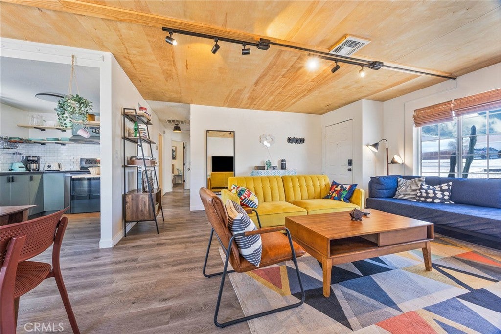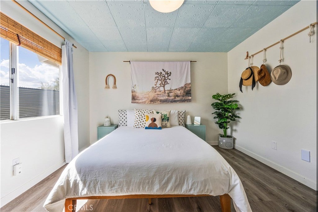MOTIVATED SELLER***This 3 Bedroom, 1 Bath turn key haven is ready for you FULLY FURNISHED and styled to perfection. With Solar this home is both eco friendly and cost efficient. Just steps from downtown Joshua Tree and only minutes from the National Park entrance, this bright and inviting retreat offers both convenience and desert charm. Enjoy peaceful surroundings, gorgeous mountain views, and a true move-in ready experience no remodeling, no furnishing, no stress. Just bring your toothbrush and step right into the Joshua Tree lifestyle. The outdoor spaces are just as special multiple seating and dining areas, a custom mural patio, firepit for late night conversations, and a relaxing hot tub perfect for stargazing under the desert sky. With solar in place, style, and location this isn’t just a home, it’s a destination. Don’t wait schedule your showing today!