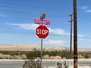 Flat Vacant Land. Let your imagination go wild with this parcel.. Built your dream home, maybe an AirBnB, or a rental, with over 10,00 sq.ft of land. View all around you, views of the mountains, views of the monument. Very close to Joshua Tree National Forest. Go hiking, camping, and enjoy The beauty of the desert. Build your home and star gaze every night, enjoy the fresh air. Shopping is close by, go down the hill and your in Palm Springs. In the winter go up to Big Bear and ski.... Water and Electricity available.