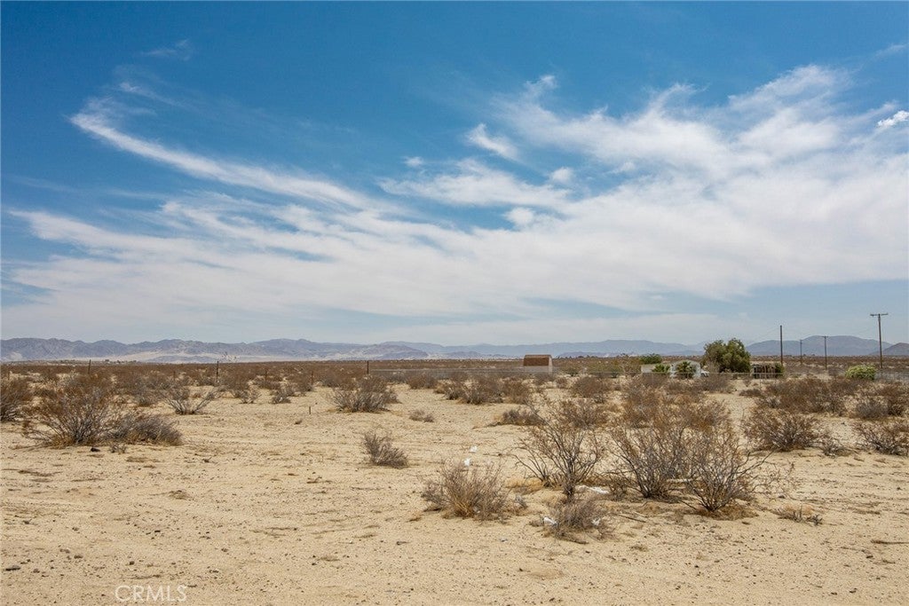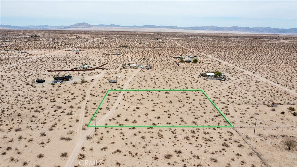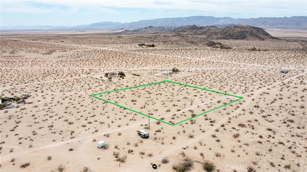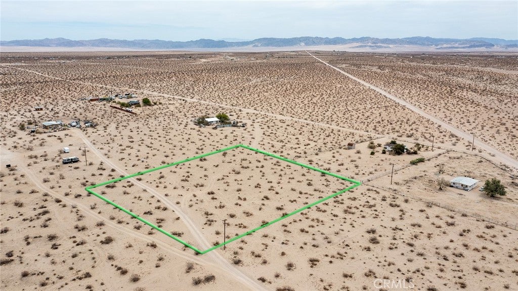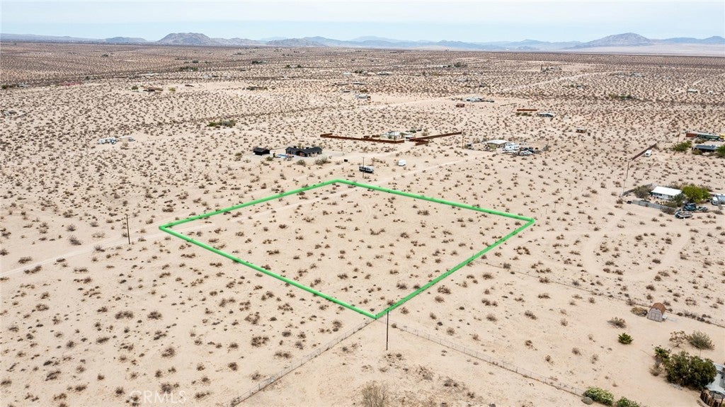 Fantastic 2.5-acres in an elevated location near the southern edge of Copper Mountain Mesa with views of the dry lake bed below and the ridgeline of the National Park in the distance. Wilderness in every direction, with lightly populated area. Approximately 1 mile from paved road. Electricity available; buyer to call water district to investigate water costs. Green lines demarcating boundaries are approximate; street address is not official – do not use to GPS to property. Locate with APN: 0632-272-40