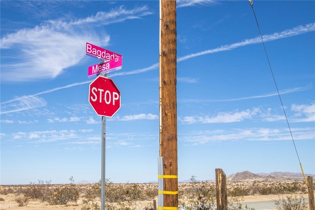5-Acres on Bagdad Hwy, near Amboy Road and close to Adobe Road in 29 Palms for shopping, dining and all your needs. Electricity runs along Mesa Drive bordering the north side of the parcel. Rural but close to town. NOTE: Green lines demarcating boundaries are approximate; street address is not official – do not use address or google maps GPS to locate property. To find property, please locate with APN: 0622-081-05