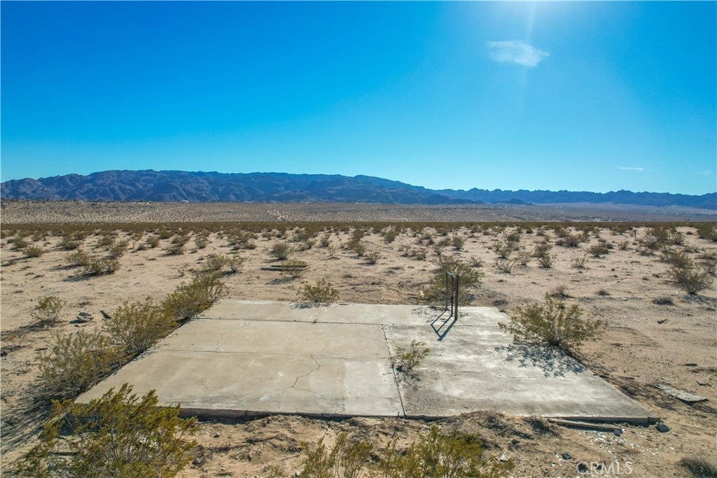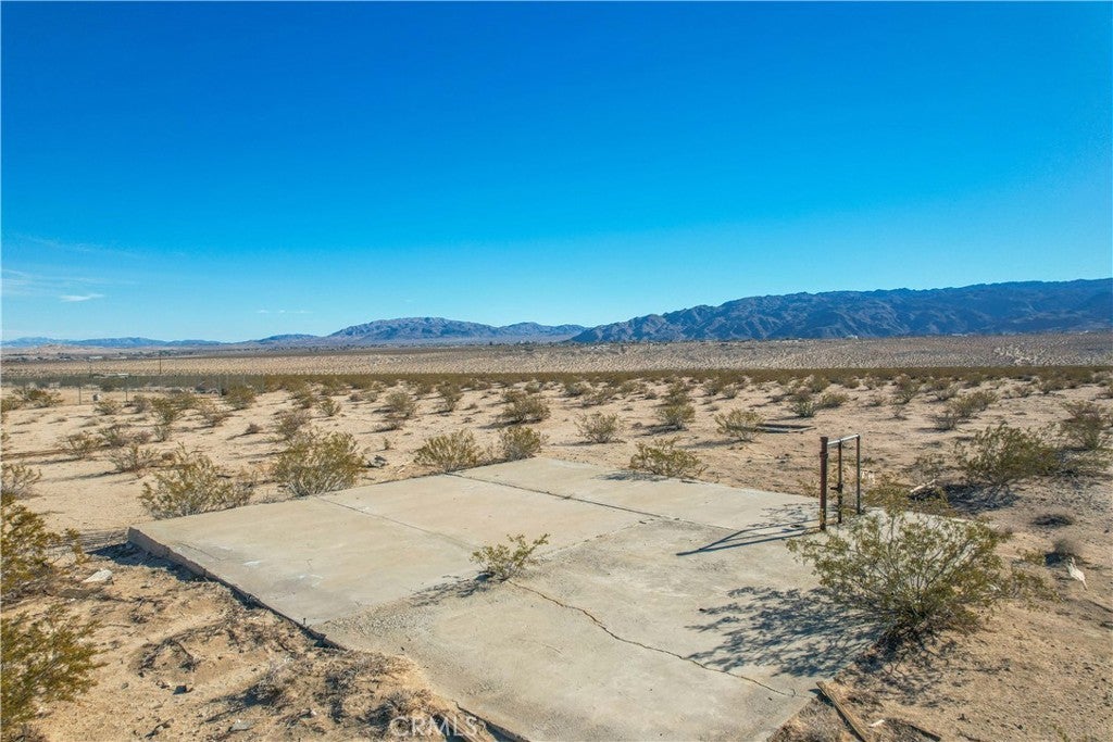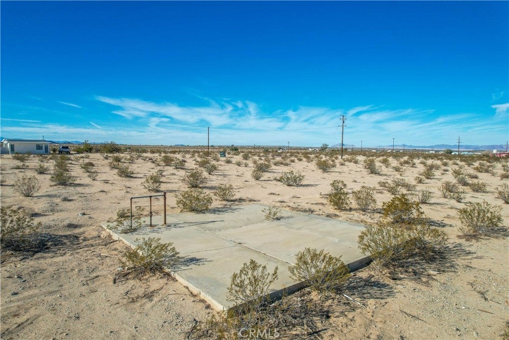 A perfect concrete slab. 29'x32'. 928 square feet. A clean slate to do whatever you want or need to do. Next to electrical poles and located in the water district. This 5 acres in Desert Heights is next to 556 acres of unobstructed land. You can't find a better 5 acres.