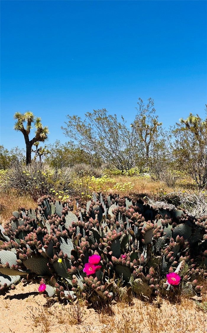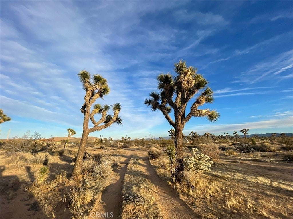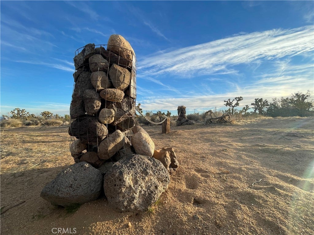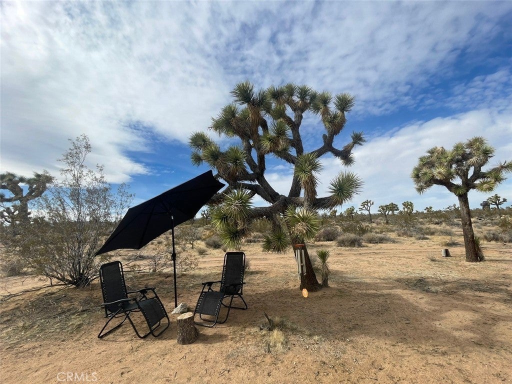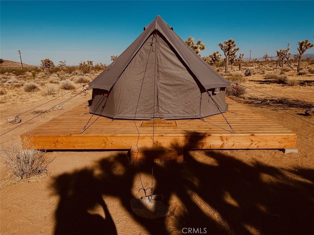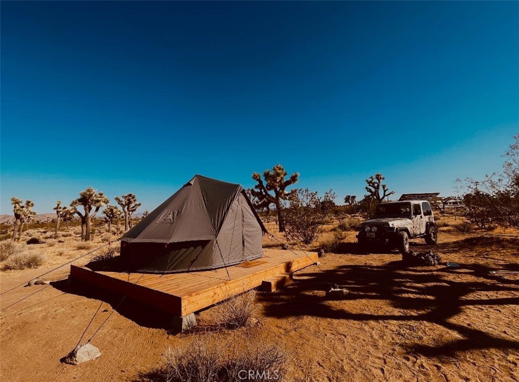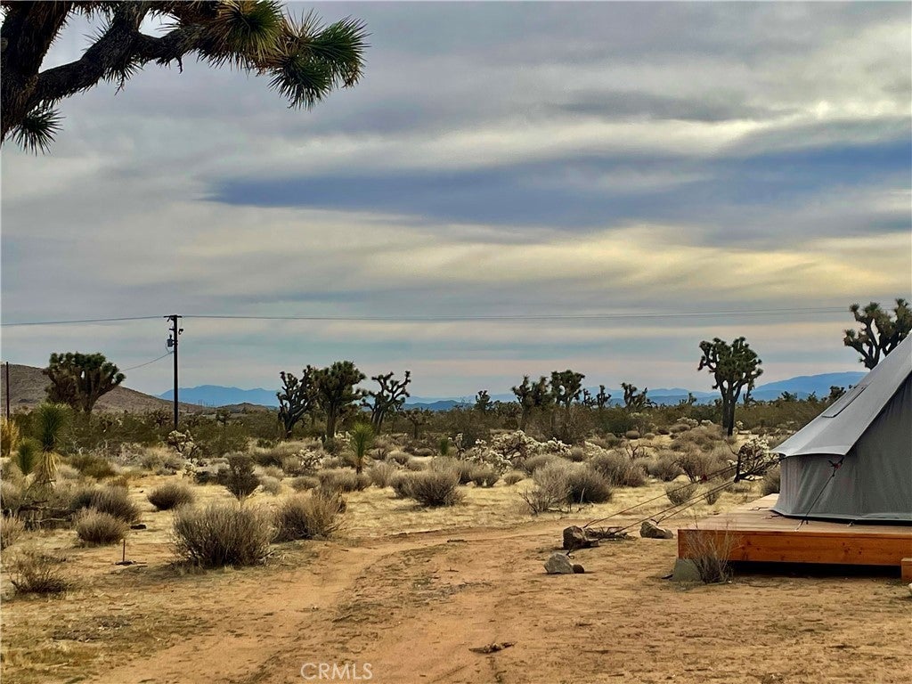 Discover endless possibilities on this remarkable 2.5-acre parcel of vacant land. Boasting panoramic views of the stunning desert landscape and its unique flora, this property offers a canvas for your dream oasis. With a water meter housing on-site (water in the street though not connected) and power conveniently close by, the groundwork for your vision is in place. As a bonus, a 13' Regatta Bell tent graces the property, perched on a charming wood deck. (currently it has been put away but still conveys with the property) This cozy retreat invites you to immerse yourself in the breathtaking surroundings, providing a perfect spot for relaxation, naps, or weekend getaways. Imagine sipping your morning coffee while soaking in the views or unwinding by the firepit under the desert stars. The property also features a shaded area, enhancing the comfort of your outdoor experience. Its strategic location, just off a main highway, ensures easy accessibility, making your journey to this peaceful haven a breeze. Enjoy the convenience of being in close proximity to Pioneertown, Joshua Tree National Monument, King of the Hammers events, and the Integratron. Whether you envision building your dream home, creating a weekend retreat, or simply embracing the serene desert landscape, this 2.5-acre parcel offers a rare opportunity to turn your aspirations into reality. (Seller paid for architectural drawings for a 800 sq ft 2 bedroom 1 bath. Ask Agent for details.) Thank you for showing.