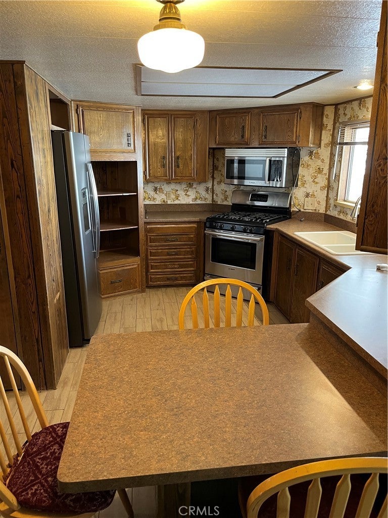 Very clean and well kept 2 bedrooms, 2 full baths in the desirable Gates of Spain Mobile Home Park. Large carpeted living room and dining room. Kitchen features nice formica counters, all Bosch appliances, ( refrigerator is GE ), with pantry. Kitchen flows nicely into family room with bar/ sink for entertaining. All new tile through out the home. Newly enclosed patio/sunroom with new slider, dual pane windows and floor. Very sizable master bedroom with cedar lined closets. Master bathroom with large soaking tub, dual sinks and separate shower. Laundry room with desk and closets. Covered front porch with mountain views and covered back patio with fenced yard for dog area. Come take a look.