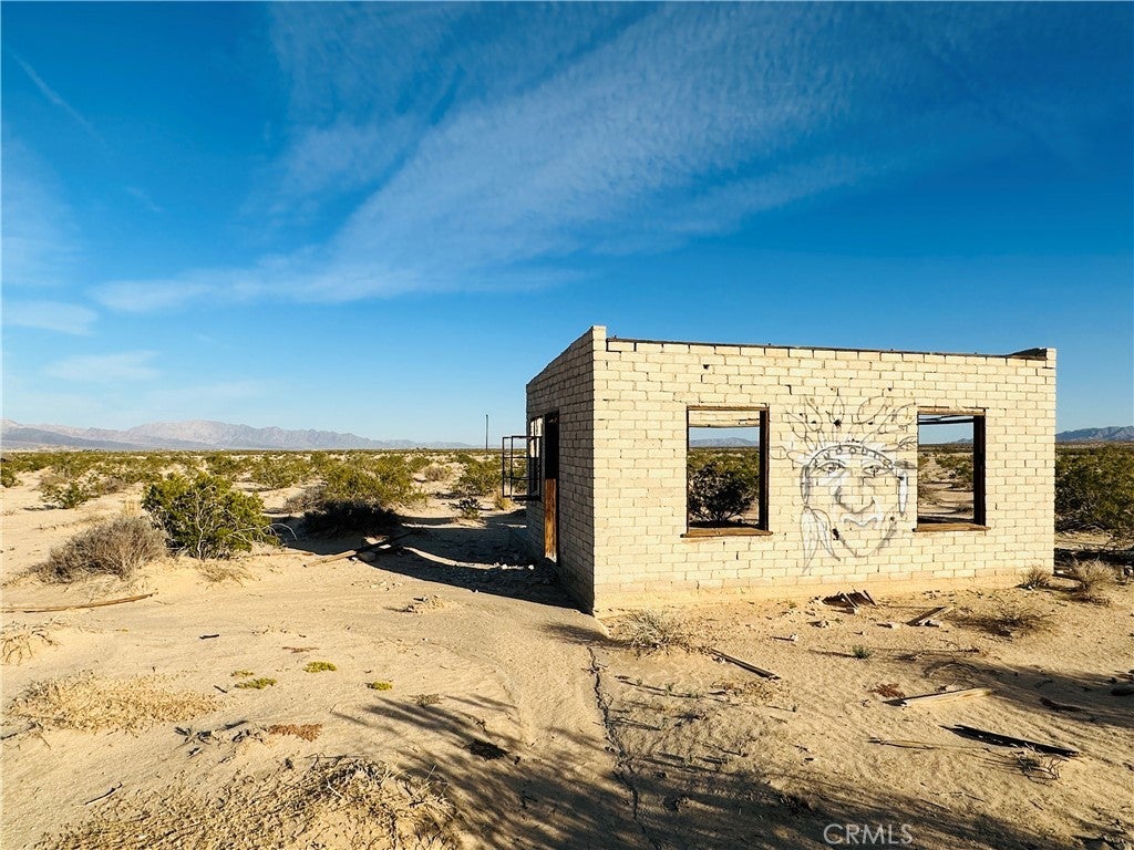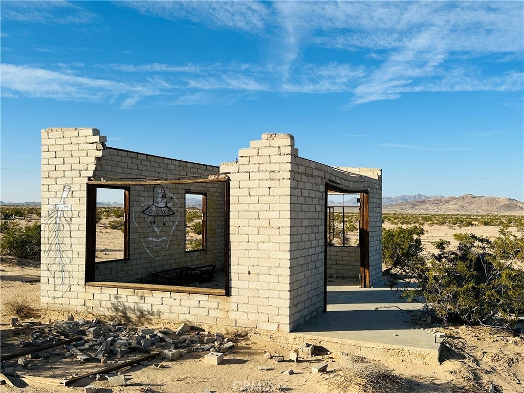5 acres in rural Wonder Valley! Unique block cabin walls on a slab. Panoramic views across the open desert to mountains in the distance. Power in the area. Easy access - close to paved Pinto Mountain Road. Property does not have an assigned address - for listing purposes only. 15 minutes from Joshua Tree National Park entrance in 29 Palms. GPS: (34.1736781, -115.9678156) APN: 0626-021-26-0000.