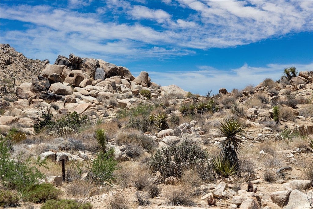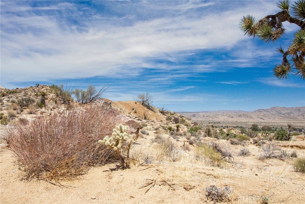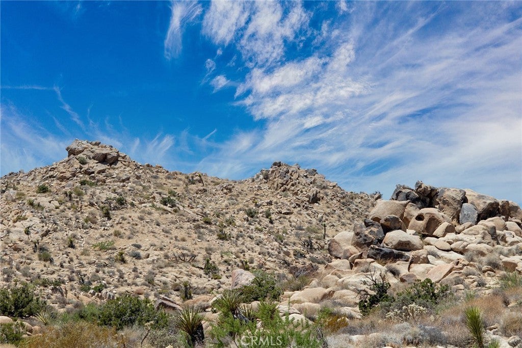 Rare opportunity to develop nearly 9 acres of Joshua Tree hillside into 6 parcels of more than an acre each. Sublime views of the basin and the playa – the vast ancient Sunfair dry lake bed. Back on the hillside, nestled into the rocks, epic views abound. Skyward, darkness forever, amid stars, galaxies and dark matter. Here on earth, in the desert, above the floor, up on the wall, looking outward, over the town the possibilities feel limitless. APN: 0588-171-09. Please see accompanying video. Or to watch video, google: “Mountain Trail parcel 0588-171-09”. https://youtu.be/vp0OIR84z64?si=9S9wbjNZII-IWiUL