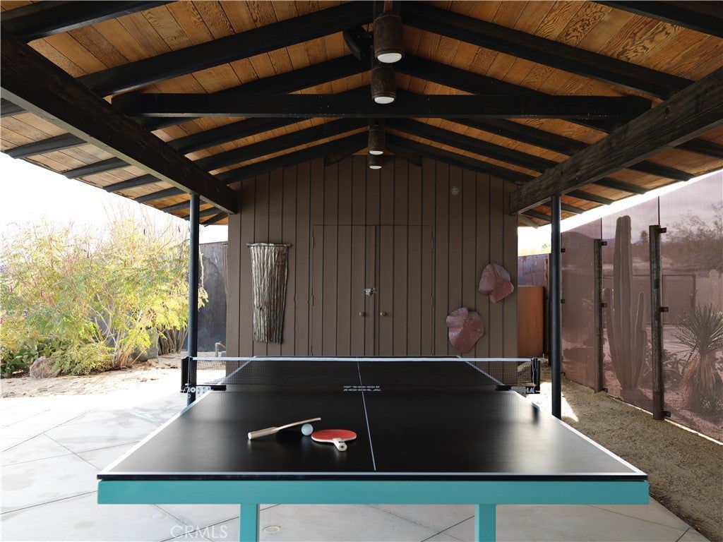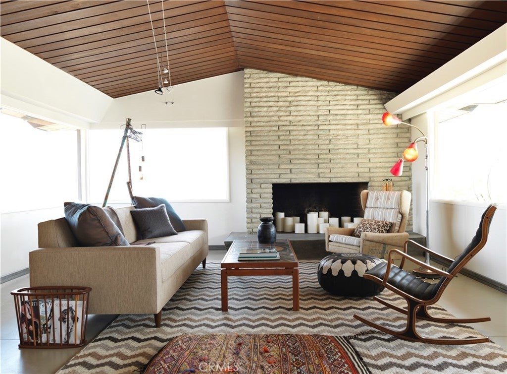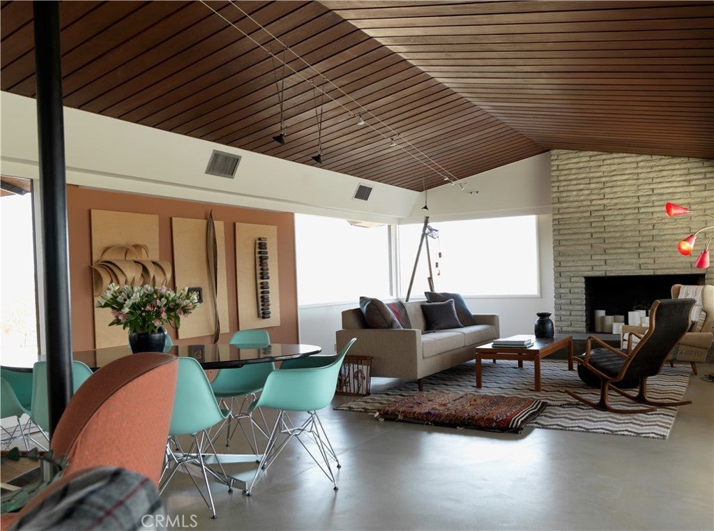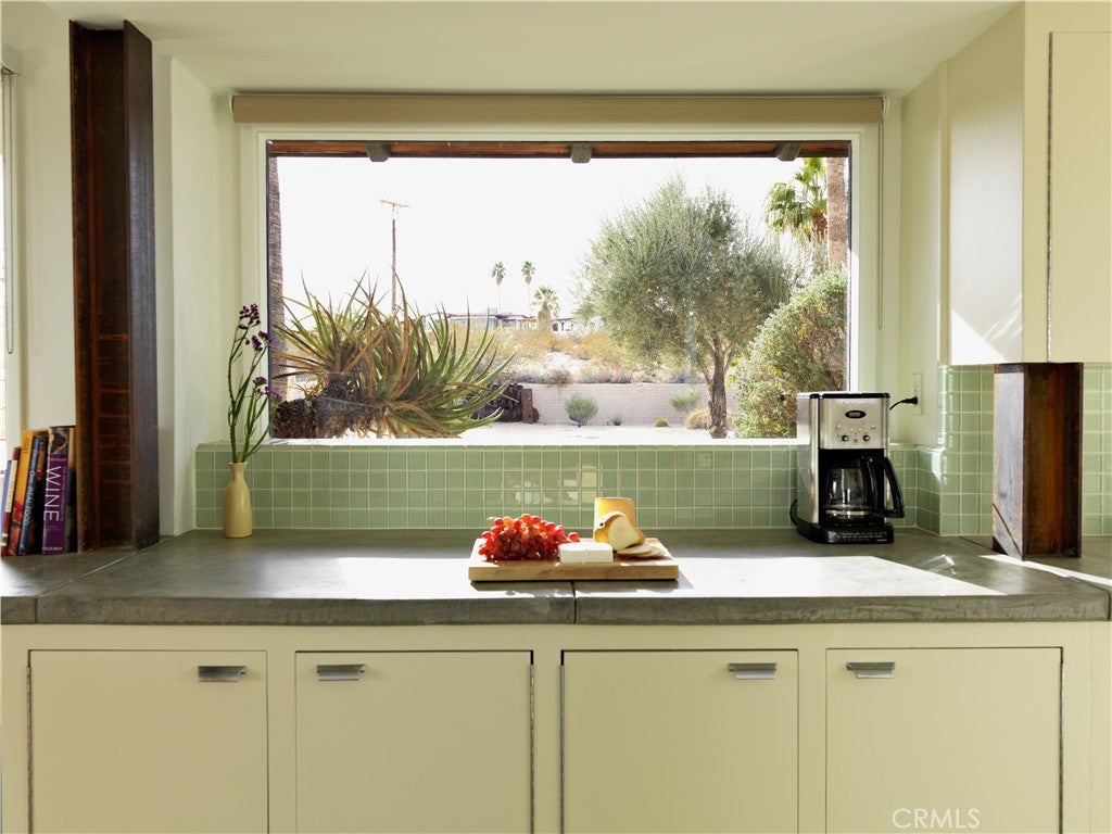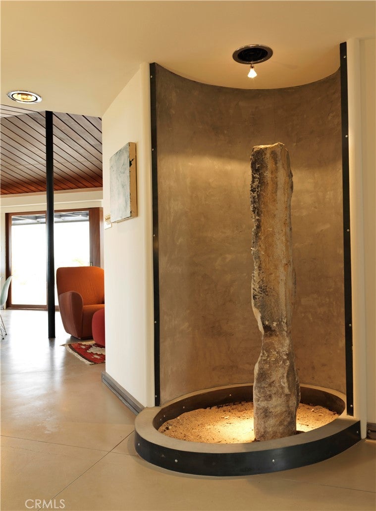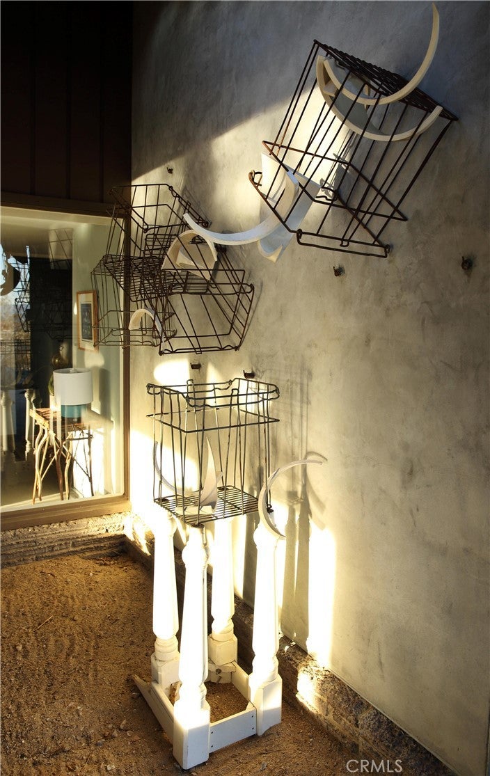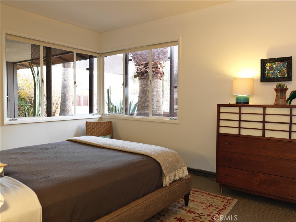 ***HUELL HOWSER’S 80-ACRE MID-CENTURY RETREAT*** Formerly owned by Huell Howser, this mid-century gem is situated on 82.7 acres and has breathtaking, unobstructed views of Joshua Tree National Park and the surrounding areas. The land is comprised of 2 legal parcels, each with additional development potential, without any subdividing. The house is situated on an 11.9-acre parcel (0614-321-38) and additional structures such as an ADU could be built. The other parcel (0615-261-01) totals 70.82 acres and protects the unobstructed national park views and amazing sunrises. It is zoned for single family homes on 1-acre lots. This parcel could also be developed with another estate home or multiple homes. After the passing of Huell in 2013, the current ownership fully restored the property and turned it into a vacation rental and wedding/event space. The home is partially gated and the grounds around the home feature mature palm trees and beautiful desert gardens that are enclosed by an iconic, architecturally designed, rusted steel fence. Extensive outdoor lighting, chosen by Huell, allows the spaces to be enjoyed in both the day and the nighttime. The home has 2 bedrooms and 2 bathrooms, a galley kitchen with a breakfast table, a great room with a wood-burning fireplace, a den/TV room or third bedroom, and a beautiful glass atrium or tea room. The master bedroom is furnished with a king-size bed, and a toddler/(day) bed. The second bedroom has a queen-size bed. The third bedroom is set up as a den or TV room, with a sofa that converts to a queen-size bed, desk & TV. The galley kitchen features classic mid-century cabinetry, concrete countertops and the original 1950s stove. The great room, has a dining table and chairs, plus media wall with TV and comfortable seating. A large dining table, that doubles as a ping pong table, is situated on the pool deck under the veranda, along with a stylish outdoor grill and vintage swing set. The pool has a maximum depth of 10 feet and also has a large tanning shelf. On one side of the pool is a separate Jacuzzi and on the opposite is a fire pit. There are five large 100-year old millstones brought in by Huell that lay about the pool area, giving the house its name. At the west end of the home is a glass atrium sitting room or tea room. The exterior walls are made of steel framed, sliding glass panels, which can be opened to blend the indoor area into the outdoor area. This landmark home is truly one-of-a-kind.