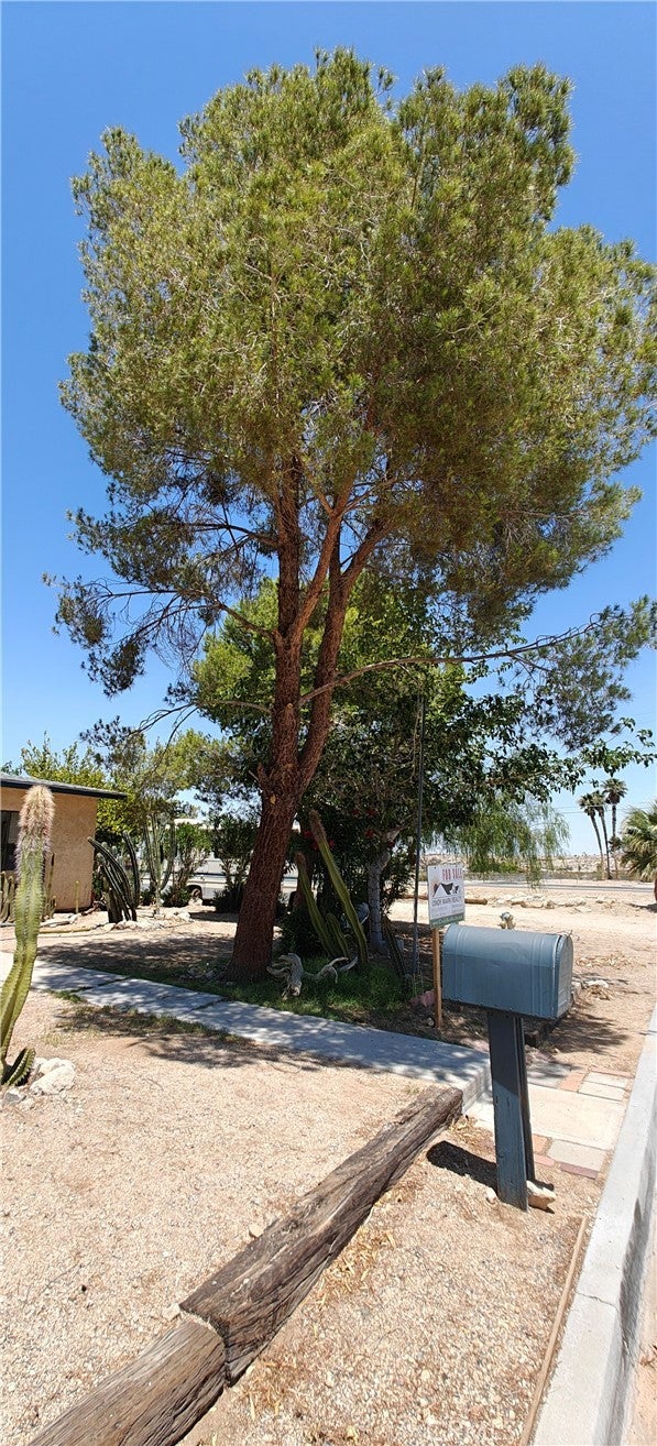 This charming home sits on a .45-acre lot, offering 1,102 square feet of living space with 2 bedrooms and 2 bathrooms, built in 1984. The property has a large backyard with stunning views of Joshua Tree National Park, perfect for outdoor enjoyment. Located at the end of a quiet street on the south side of Highway 62 in 29 Palms, it’s ideally situated for both peace and convenience. The Tortious Rock Casino is just a short 5-minute drive away, while the Marine Base is 15 minutes by car. Additionally, Theater 29 is located nearby, providing easy access to local entertainment. Buyer to verify square footage. A fantastic location for those looking for both tranquility and accessibility! This 2-bedroom, 2-bathroom home offers a spacious bonus room that can easily be converted into a third bedroom. It also features two double garages with a 3/4 bath and additional space between them that could be used for a kitchen or other purposes. Located near the park with stunning mountain views, this property provides a fantastic opportunity to own a home in a desirable location at an "as-is" price, allowing you to make updates and personalize it to your liking. With a new roof installed in 2022, mature trees, and desert landscaping, this home offers a peaceful and picturesque setting. Ideal for those looking to invest in a property that combines both tranquility and the potential for customization.