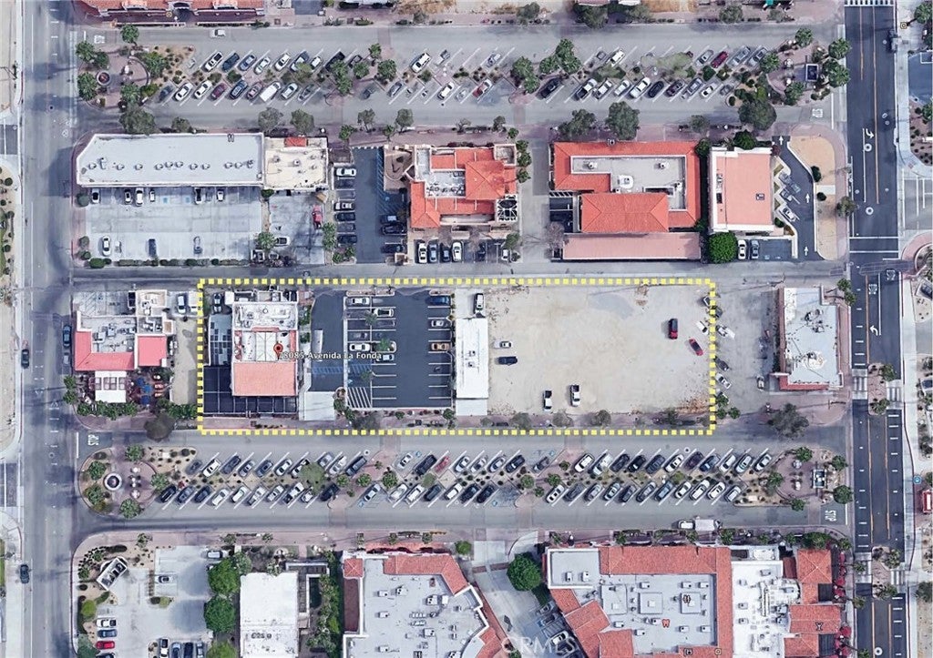 Once in a lifetime opportunity in the heart of LaQuinta! One building approximately 8,000 square feet which is an operating restaurant, with an additional building of approximately 1,500 square feet, and a total of 13 lots taking up almost all of an entire city block. Ready to be developed into a hotel, or high-end condominiums, or a hybrid of hotel/retail with the restaurant. See additional attachments.
