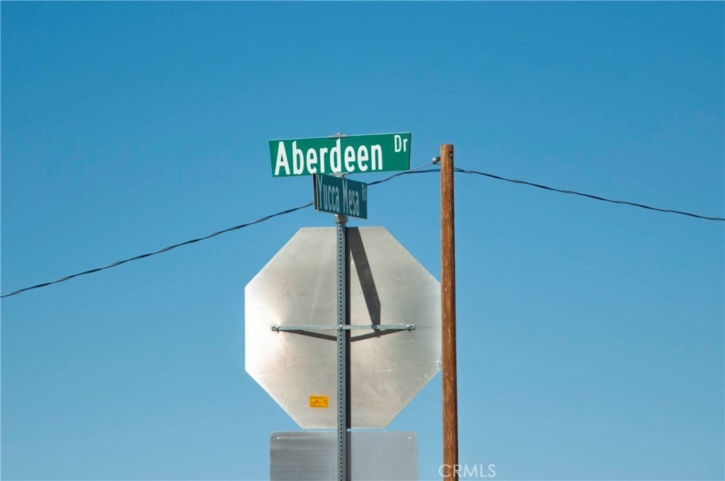 Huge Price Reduction! Seller Says Sell! CORNER LOT! Prime Location! 3.6 acres of buildable land on the corner of Yucca Mesa Rd and Aberdeen across from Mesa Market! This convenient locale offers views and easy access routes to nearby Joshua Tree and the National Park, the city of Yucca Valley with stores and restaurants, the quick access, back way to Pioneertown and Pappy & Harriet's via Pipes Canyon Road, and Old Woman Springs Road leading to Landers and beyond! Paved Road Frontage on Yucca Mesa and Aberdeen. Power poles are on 2 sides/frontage of property and water is available in street and in area. Find your new Desert Lifestyle here, and make it your own!