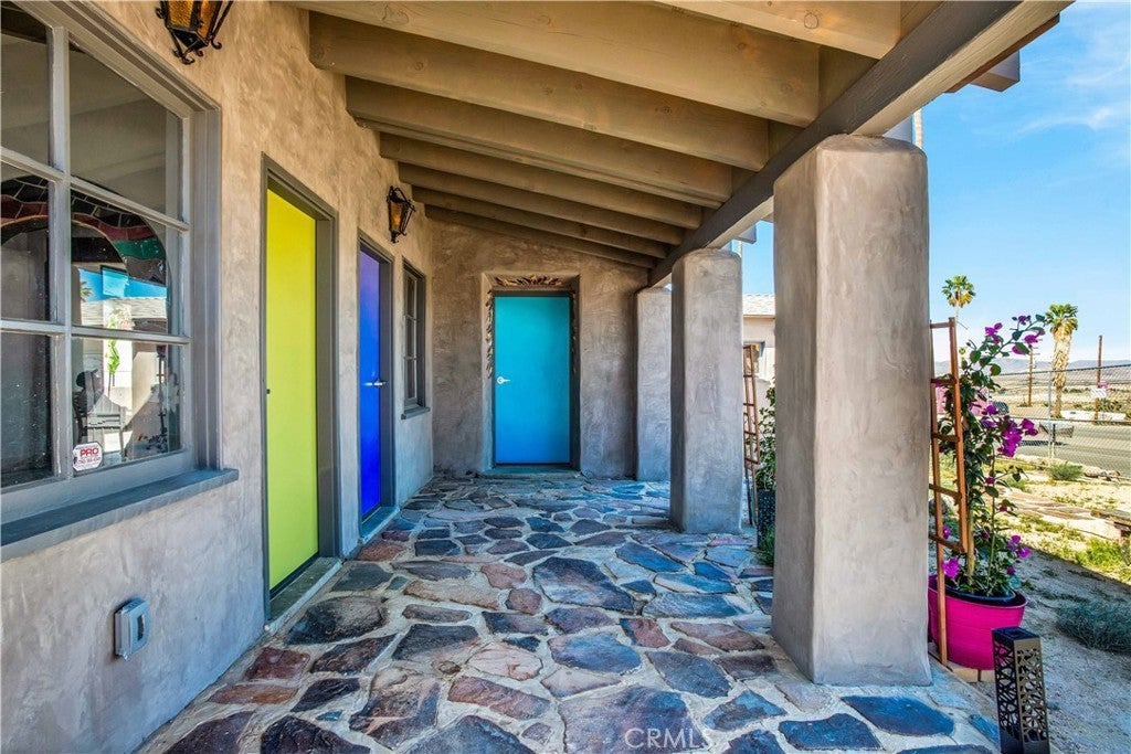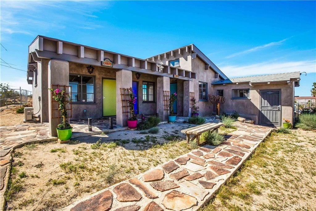 Historic 1938 Commercial Gem in Twentynine Palms. Step into a piece of Twentynine Palms history. This beautifully restored 1938 commercial building was the original Desert Trail newspaper office. Thoughtfully renovated in 2024, this iconic property seamlessly blends vintage charm with modern convenience. Every detail was carefully preserved while incorporating brand-new energy efficient systems, including HVAC, plumbing, electrical, drywall, exterior plaster, new insulated roof, and lighting. Spanning 1,301 square feet, the building features an open layout with private offices, two restrooms, and a kitchenette, offering flexible functionality. High vaulted wood-beamed ceilings add character, while multiple entrances enhance versatility for various business uses. A covered flagstone veranda faces Adobe Road, providing inviting curb appeal. This distinctive space is ideal for a stylish salon, spa, medical office, or professional workspace. A rare opportunity for a visionary investor to own a timeless landmark and bring new life to a historic piece of Twentynine Palms. (Zoned General Commercial. Please see attached listing supplements).