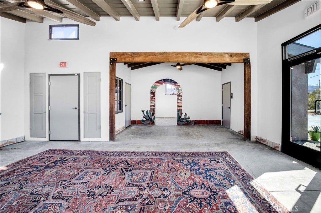 Historic 1938 Commercial Gem in Twentynine Palms. Step into a piece of Twentynine Palms history. This beautifully restored 1938 commercial building was the original Desert Trail newspaper office. Thoughtfully renovated in 2024, this iconic property seamlessly blends vintage charm with modern convenience. Every detail was carefully preserved while incorporating brand-new energy efficient systems, including HVAC, plumbing, electrical, drywall, exterior plaster, new insulated roof, and lighting. Spanning 1,301 square feet, the building features an open layout with private offices, two restrooms, and a kitchenette, offering flexible functionality. High vaulted wood-beamed ceilings add character, while multiple entrances enhance versatility for various business uses. A covered flagstone veranda faces Adobe Road, providing inviting curb appeal. This distinctive space is ideal for a stylish salon, spa, medical office, or professional workspace. A rare opportunity for a visionary investor to own a timeless landmark and bring new life to a historic piece of Twentynine Palms. (Zoned General Commercial. Please see attached listing supplements).