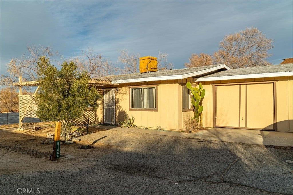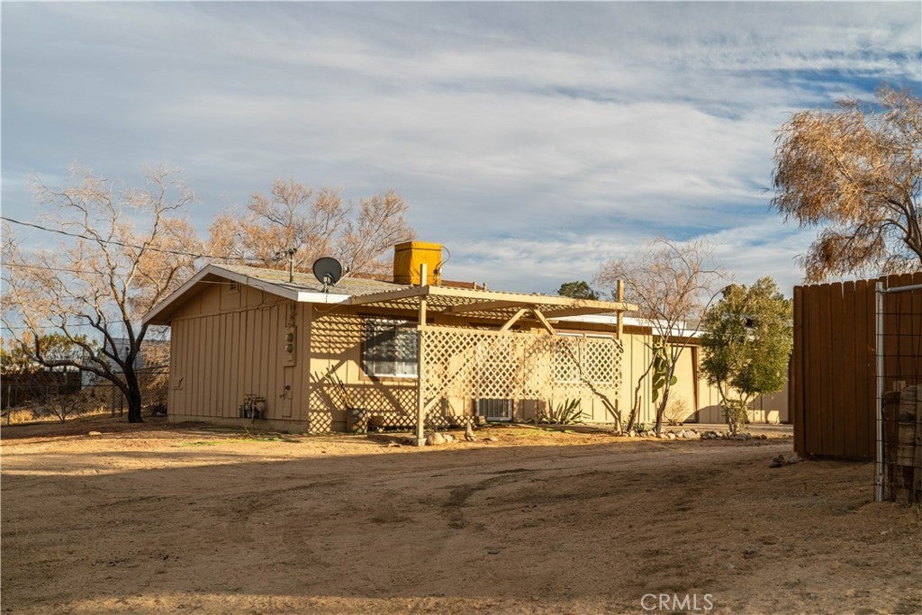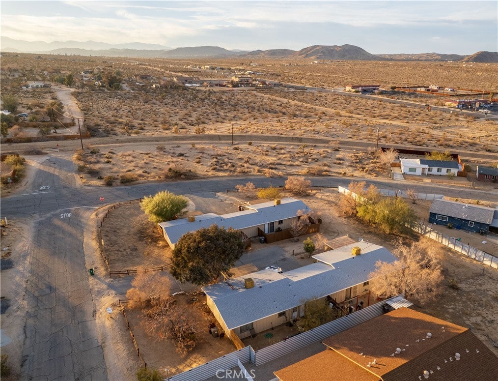 Sweet duplex in Joshua Tree Village just a couple blocks from downtown Joshua Tree. Has nice views of surrounding mountains! Both units are two bedroom, one bath with fenced back yard and single car garage. There is space on the south end of the building for an additional structure or add on. Both units are same size and floor plan, with similar improvements. Units have just had new exterior paint. Back yards are wood fenced for privacy and front of back unit has a chain link fenced area. This property has natural gas heat and stoves. Rent both, live in one and rent the other, or live in one and have a mother in law unit. The options are yours!