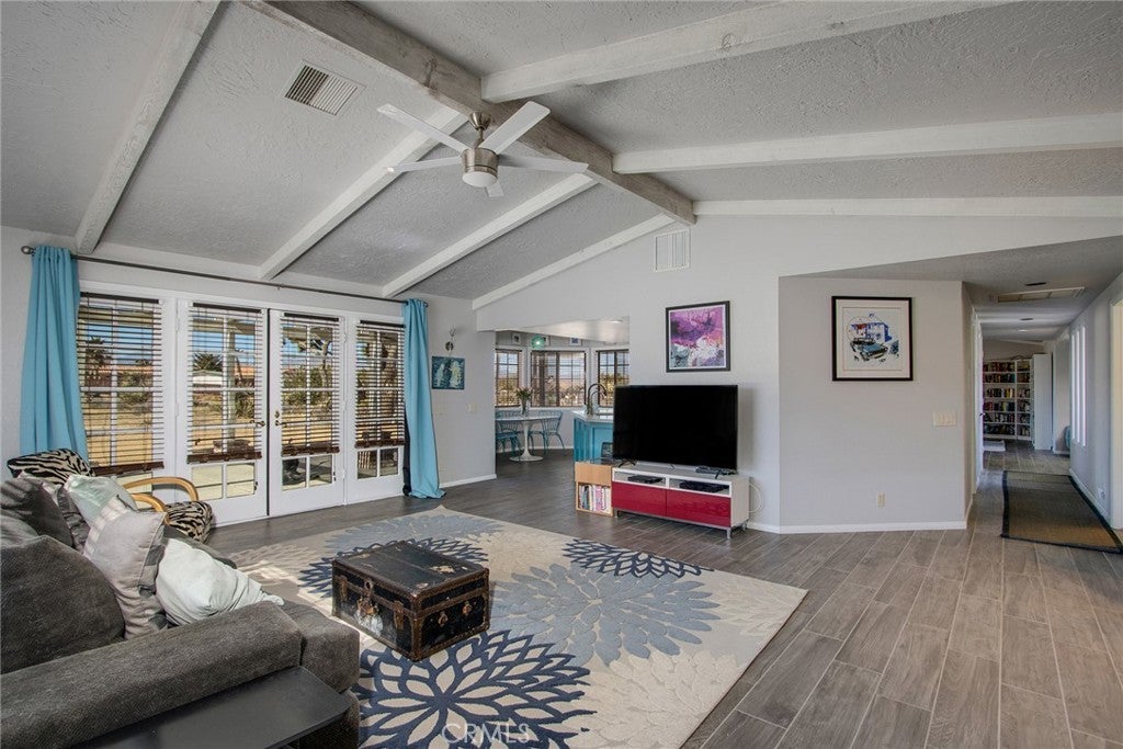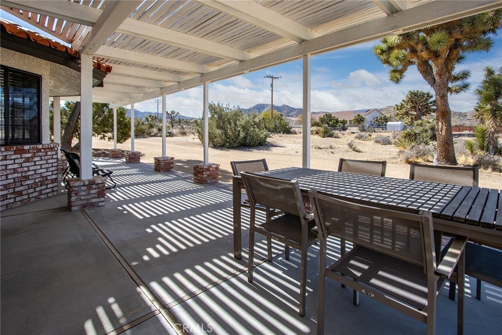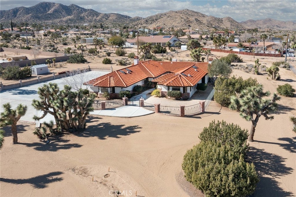 There is something so special about a California/Spanish designed home. The lines of the house. The use of brick. The exterior flow of design has been popular since Missions first appeared in our great State. This home exemplifies this California style. And then some! The curves, the brick, the tile, the location. All come together in this magnificent home. 2,874 square feet of living space and an oversized, finished, three car garage all located on almost 1.75 acres in the beautiful upper Sky Harbor neighborhood. Within walking distance to a Town Park and the National Park. This home offers a formal living room, a family room, a formal dining room, and an open, extra-large kitchen with a breakfast nook. The kitchen sports a professional style range for pro-cooks. This is a split floor plan with the huge primary suite on one side of the home and the two large bedrooms on the other. More cement work than most High Schools makes for easy access and maintenance to the property. A newer solar power system complete with a battery is included in the sale. Beautiful, mature Joshua Trees add a taste of our Hi Desert to this home. Make sure to see this one, you will thank me when you do!