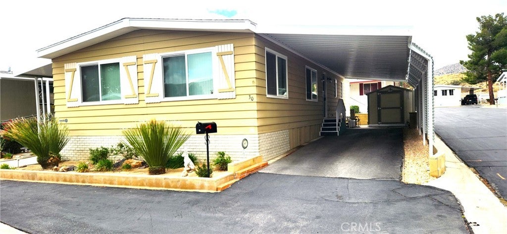 Country Club Mobile Homes Estates is a 55-plus park. This spacious mobile home offers very comfortable living with two large bedrooms. Ample living space and dining area. This is a beautiful corner lot with views of the mountains. Enjoy the large, spacious kitchen with two pantries. Numerous cupboards offer plenty of storage for all of your kitchen needs. The main bedroom has two large closets and one walk-in closet. The second bedroom has a pop-out area, giving plenty of extra bedroom space, office space, an art studio, or a workout area. There are energy-efficient double-paned windows. Two porches offer a perfect spot for relaxation. The added Tuff Shed is clean with shelving and electricity. Enjoy time at the pool and clubhouse. It is within walking distance to Hawks Landing Golf Course and The Roost Cafe. Furnishings are negotiable.