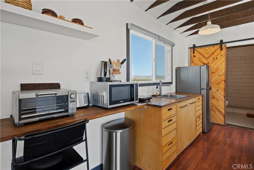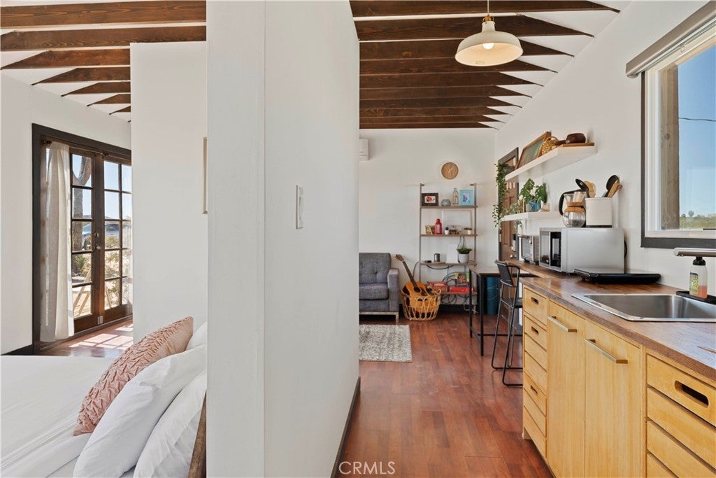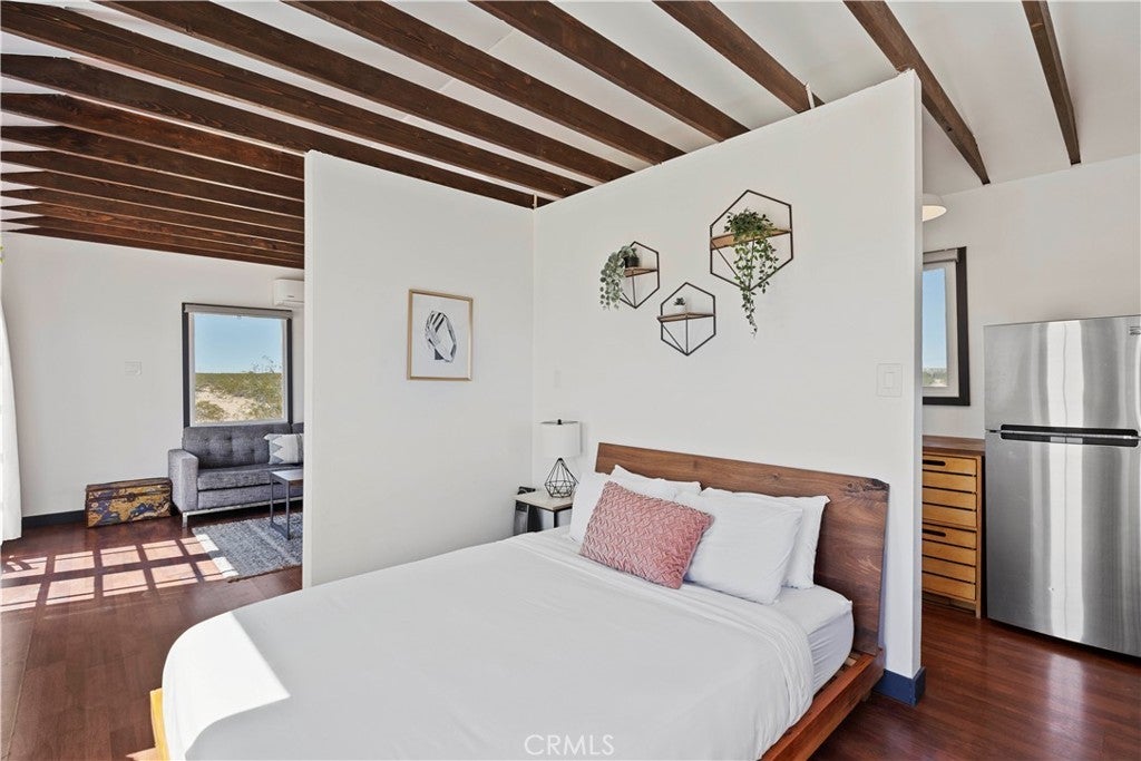 Escape to the serenity of the Mojave Desert with this authentic homestead cabin nestled on 5 acres of pristine land in North Joshua Tree. Surrounded by breathtaking desert vistas and iconic Joshua trees, this property offers the perfect blend of seclusion and inspiration for artists, adventurers, and nature lovers alike. Property has been upgraded with a fully-modern bathroom and ductless air conditioning and heating. Unparalleled Views—360-degree panoramas of the mountains, sunsets, and starlit skies. Minutes from Joshua Tree National Park, Pioneertown, and local amenities. Ideal for a weekend retreat, or creative getaway. Recreational cabins cannot be used as short-term rentals, buyer in investigate all uses and permitting. Furniture and Starlink equipment also available for negotiation.