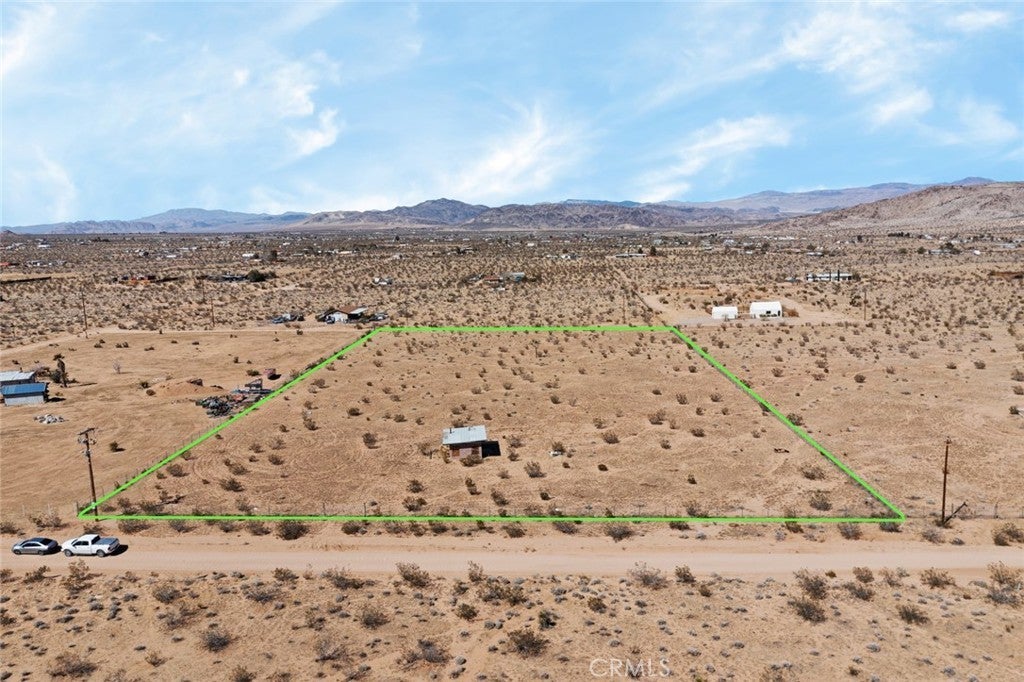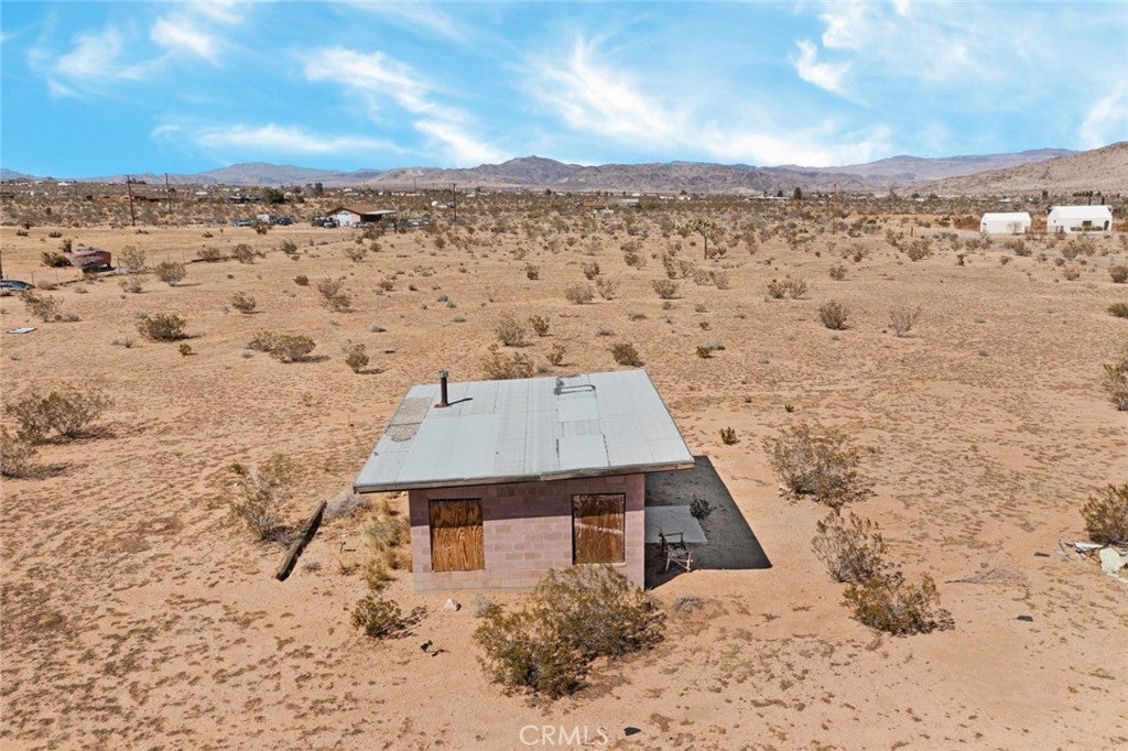 A CLASSIC PINK BLOCK CABIN ON 5 ACRES READY TO CONVERT TO A SFR! This little pink block cutie is a connection to our historic homesteading past here in Landers (and all over the Morongo basin and beyond!). The sellers have already obtained the permit to convert it to a Single Family Residence (SFR) as well as plans, been approved for a water meter and obtained a perc test. It has been sited on the property perfectly to take in the grand view of Goat Mountain and the mountains beyond. After passing through the gate, you are presented with a nice, flat buildable lot with a nice joshua tree beyond the cabin. You can fix up this little gem and use it as an off-grid weekend retreat or build a home on the flat open lot and keep the cabin as an ADU. Power poles are on two corners of the property. Bighorn-Desert View Water District says a water meter can be added to this property. (Buyer to verify water and power availability). Fully fenced. The dirt road leading to the property are easily accessible with a 2wd car. The Integratron, Giant Rock, La Copine, the Johnson Valley OHV area are all nearby. Pappy & Harriets, the Joshua Tree village and National Park are all a short, pleasant drive away.