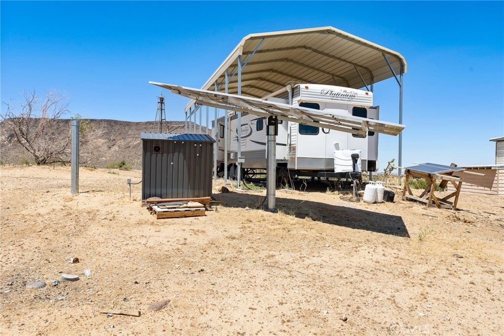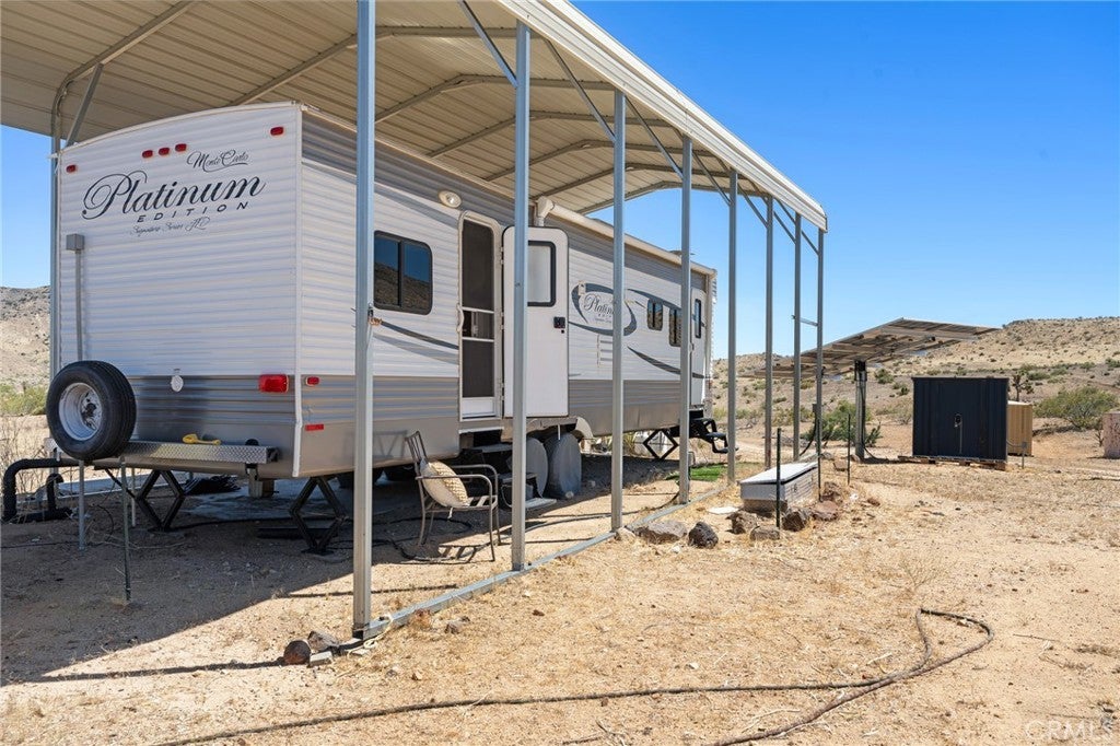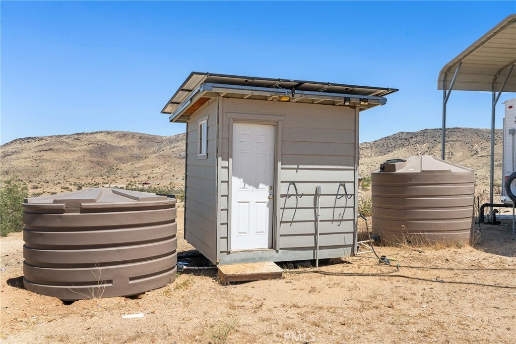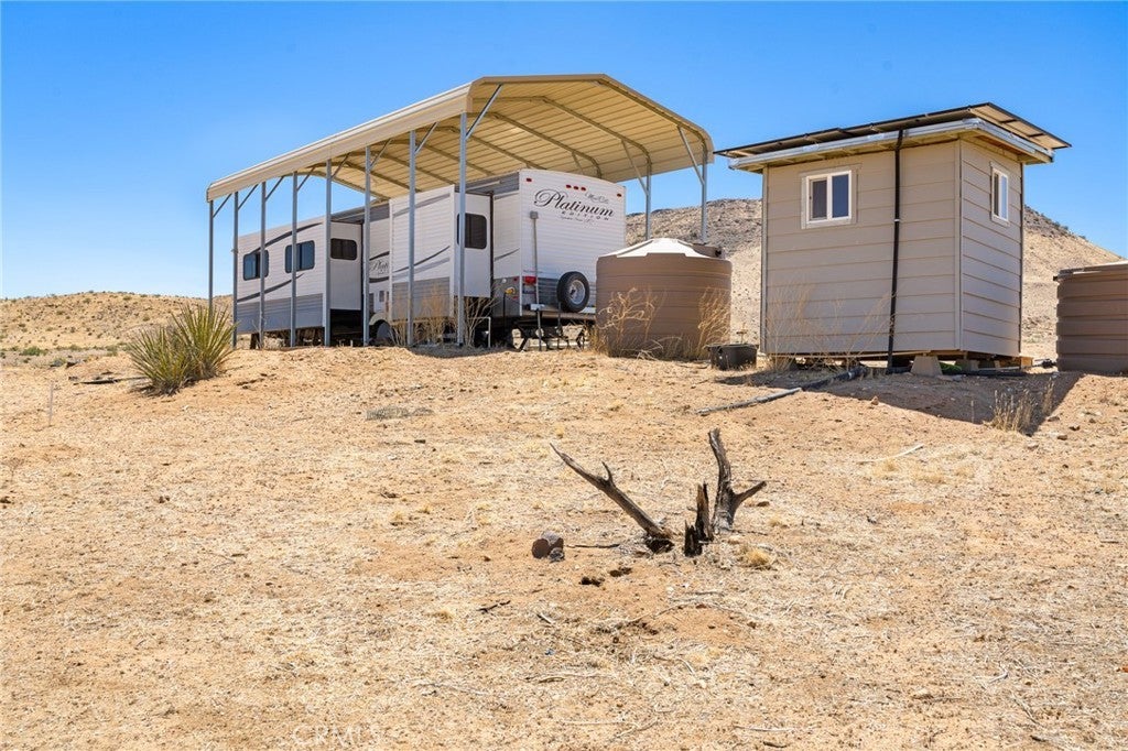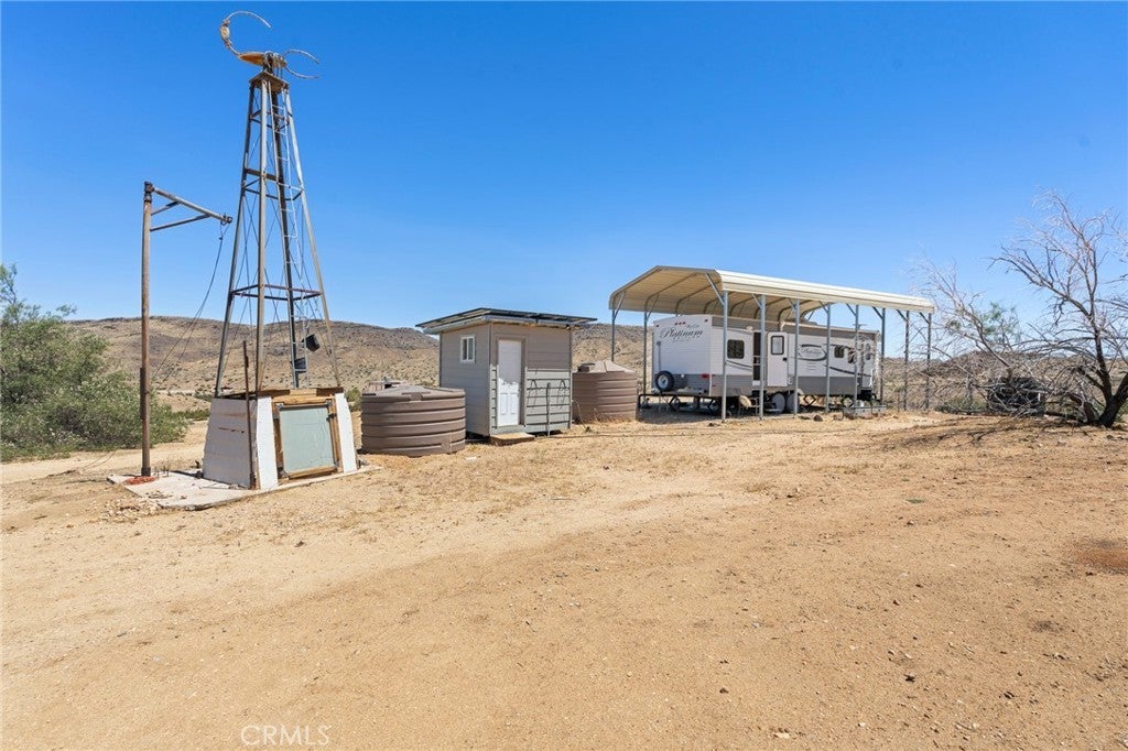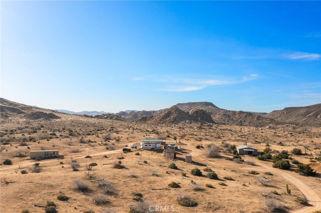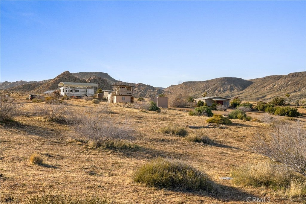 Welcome to Scorpion Ranch—the most magical 20-acre parcel in the coveted Pipes Canyon area, nestled against the protected Sand to Snow Monument Park land conservancy. Step right into nature with direct access to scenic hikes, iconic boulder formations, and breathtaking 360-degree views surrounded by Joshua trees. This is one of the most desirable areas in the High Desert, conveniently located near Joshua Tree, Yucca Valley, Pioneertown, La Copine, and the historic Giant Rock Meeting Room. Big Bear is also within easy reach, offering year-round adventure and escape. The property features an RV fully hooked up to septic and a solar system, making it a comfortable off-grid base while you plan or build your dream home. Also included are a container home, a storage container, and multiple structures that spark creativity and offer limitless potential. Scorpio Ranch also has a non-operational well that could potentially be restored, along with two water tanks, providing valuable options for future water access. Overlooking Pipes Canyon and offering total seclusion, Scorpion Ranch is a rare opportunity to own a stunning slice of the High Desert—ideal for a personal sanctuary, creative retreat, or future homestead.