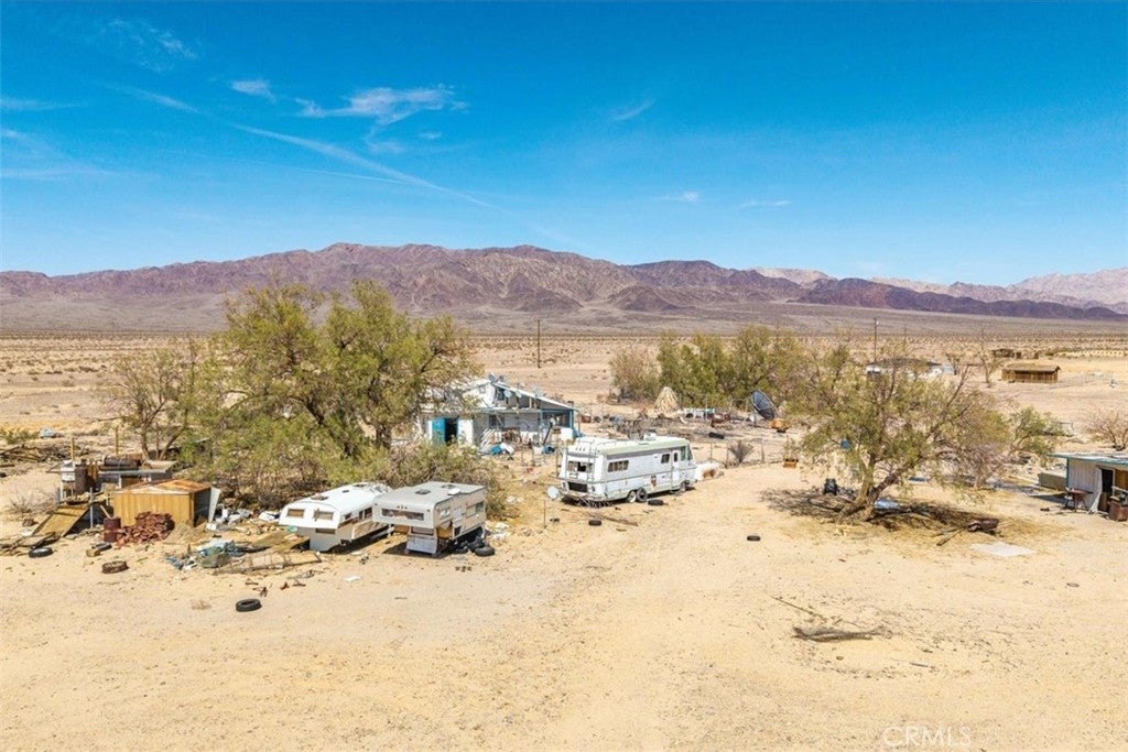 Priced to sell this fixer property is awaiting someone to rehab it to it's original condition. Panoramic views on Panorama. There are two parcels being sold together totaling just under 10 acres and bordering over 600 acres of Bureau of Land Management land to the North creating an expanse of privacy and rural tranquility that is much sought for in the area. With sparse neighbors, open vistas, dark night skies filled with spectacular starry views and partially off grid this is a special place indeed. The first 4.9 acre property boasts a 1192 square foot home with one bedroom and two baths, a large kitchen and a living room. The second parcel is 4.98 acres and features a 480 square foot homestead cabin near by to the main home. The sellers will make no repairs or remove anything from the property and the sale is to be as is. The homes are currently uninhabitable and are do not enter status. Vehicles on property do not belong to the sellers and the sellers cannot remove them. There is municipal power at the property however not municipal water. There once was a well in the well house adjacent to the main home however the equipment is no longer in place and the sellers are not aware of the condition of the well. Located in wondrous Wonder Valley with it's eclectic vibe and incredible sunrises, sunsets and night skies.