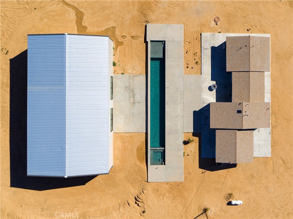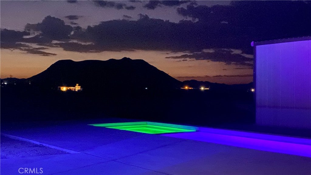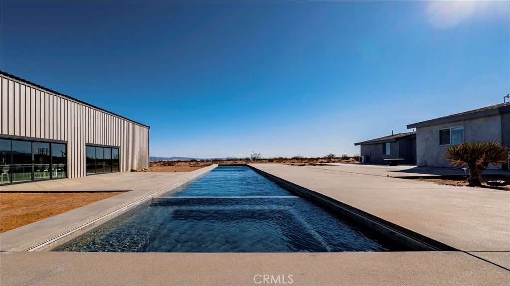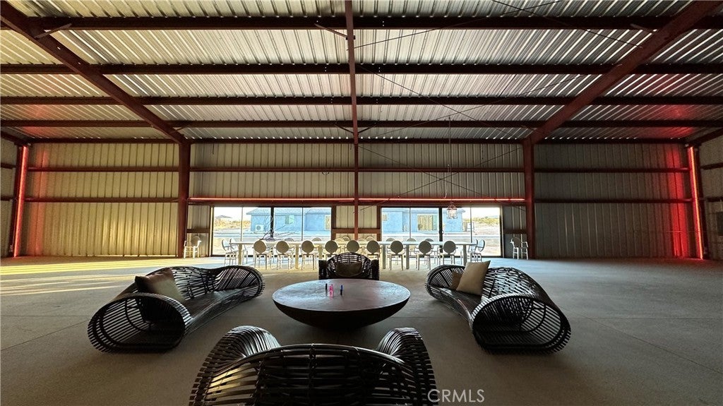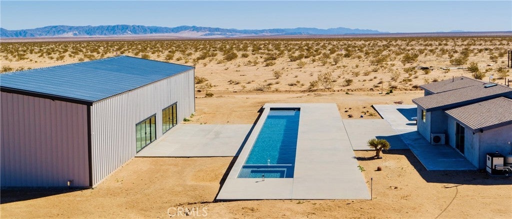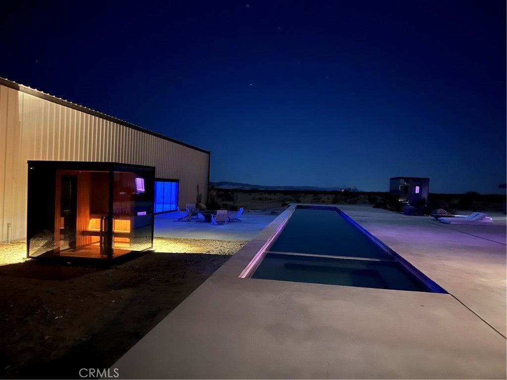Designed by world-renowned executive producer and designer Christopher Hanley, with interiors by Roberta Hanley, this extraordinary retreat takes inspiration from the internationally acclaimed Invisible House. Just minutes from the legendary Giant Rock—revered as the world’s largest free-standing boulder and a hub for UFO lore—this one-of-a-kind property invites the unexpected. A 4,500 square foot steel-framed hangar sits tucked out of view, ideal for private events, creative production, rehearsals, performances, or simply as an expansive retreat space. Nearby, a 100-foot pool and spa reflect the sky by day and stars by night, offering the ultimate backdrop for rest or revelry. Inside, the home features sculptural architecture, slate-finished luxury bathrooms, multiple sleeping zones, and private alcoves designed for both solitude and connection. Included on-site is a mirrored sauna, along with two reflective domes by OOD Designs created for yoga, meditation, or massage—thoughtful elements that elevate wellness and retreat-style living in the high desert. Offered for lease at $8,000 per month. It is also available for purchase, and Bitcoin is accepted. With 10 acres composed of two legal 5-acre parcels, there is opportunity for future expansion—zoned for an additional main residence and two guest homes or ADUs. Moments from the base of Goat Mountain, and surrounded by sweeping desert skies, this estate delivers a lifestyle of tranquility, inspiration, and endless potential.