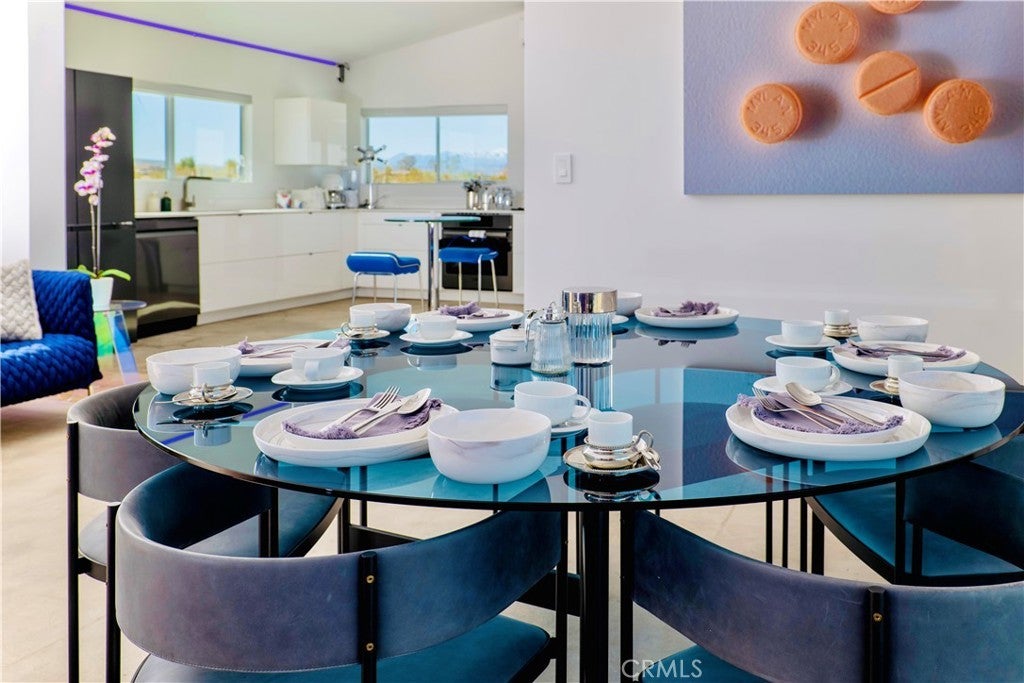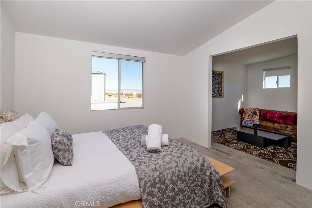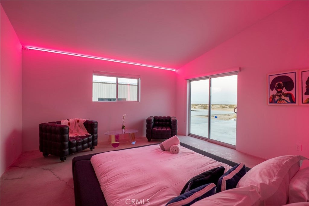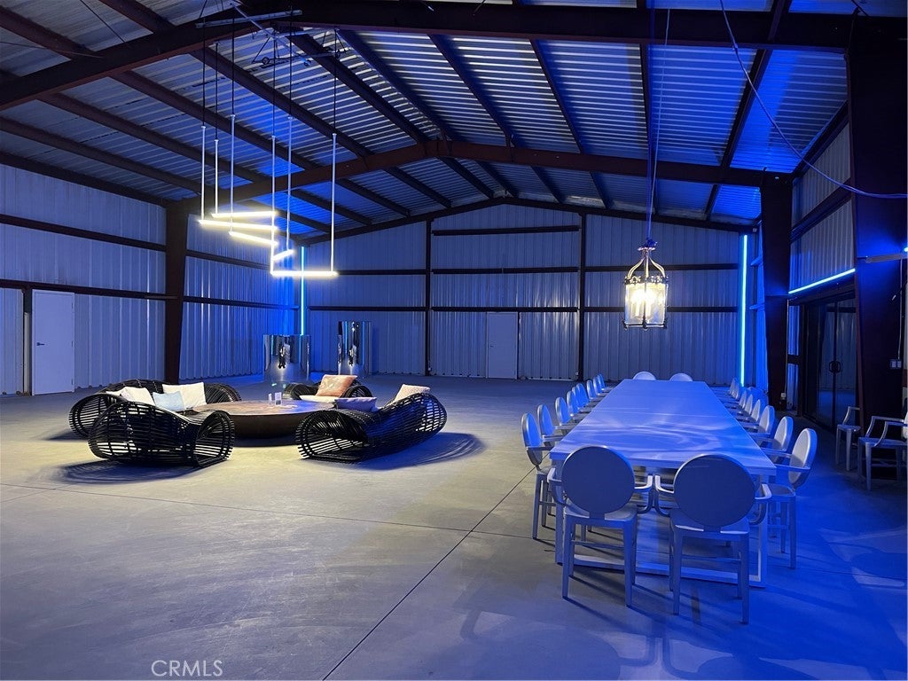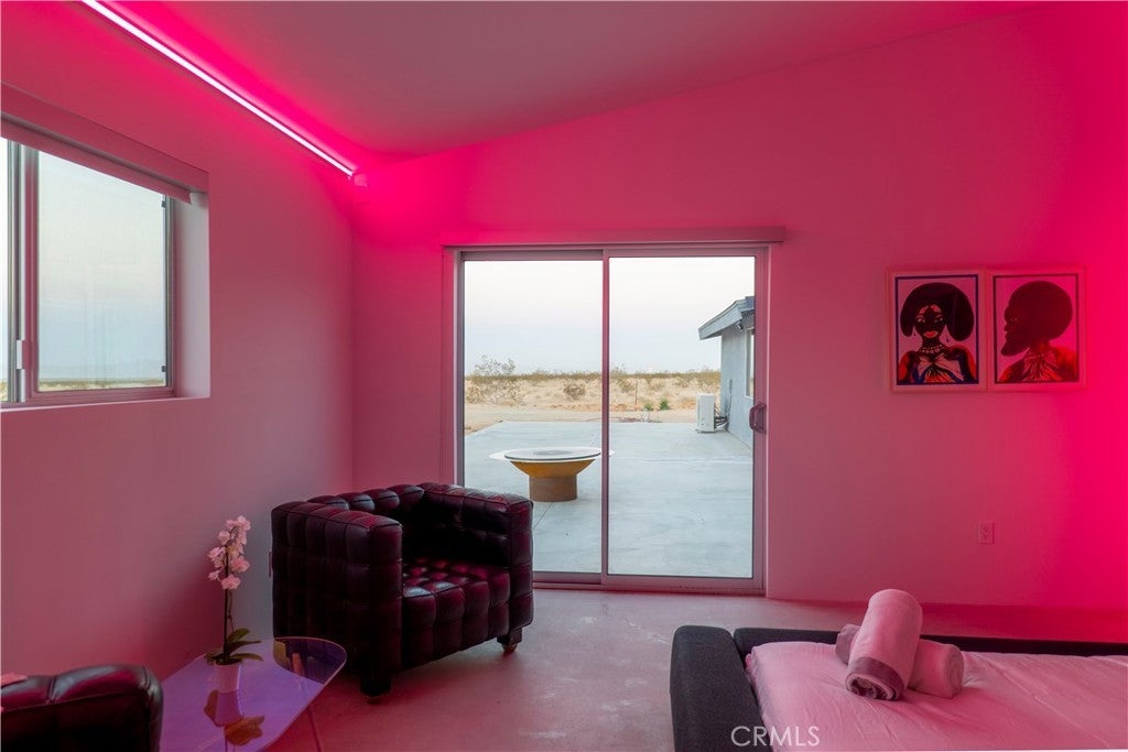 Designed by world-renowned executive producer and designer Christopher Hanley, with interiors by Roberta Hanley, this extraordinary retreat takes inspiration from the internationally acclaimed Invisible House. Just minutes from the legendary Giant Rock—revered as the world’s largest free-standing boulder and a hub for UFO lore—this one-of-a-kind property invites the unexpected. A 4,500 square foot steel-framed hangar sits tucked out of view, ideal for private events, creative production, rehearsals, performances, or simply as an expansive retreat space. Nearby, a 100-foot pool and spa reflect the sky by day and stars by night, offering the ultimate backdrop for rest or revelry. Inside, the home features sculptural architecture, slate-finished luxury bathrooms, multiple sleeping zones, and private alcoves designed for both solitude and connection. Included on-site is a mirrored sauna, along with two reflective domes by OOD Designs created for yoga, meditation, or massage—thoughtful elements that elevate wellness and retreat-style living in the high desert. Offered for lease at $8,000 per month. It is also available for purchase, and Bitcoin is accepted. With 10 acres composed of two legal 5-acre parcels, there is opportunity for future expansion—zoned for an additional main residence and two guest homes or ADUs. Moments from the base of Goat Mountain, and surrounded by sweeping desert skies, this estate delivers a lifestyle of tranquility, inspiration, and endless potential.
