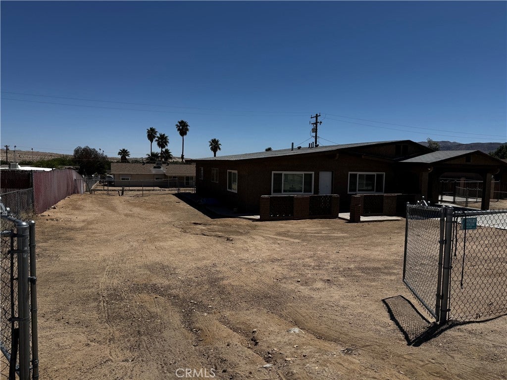 WOW! What a great looking home at an even better price! This spacious 3-bedroom, 2-bath home also includes a bonus room, giving you over 1,500 square feet of living space to make your own. It’s got a solid layout, great bones, and has been recently refreshed with brand new carpet in the bedrooms and fresh interior paint, giving it a clean and inviting feel from the moment you walk in. Located in a nice, quiet neighborhood, it's also just a short walk to Lucky Park, so you’re close to schools, playgrounds, and community events. The home sits on a fully fenced lot with drive-thru access, making it ideal for extra vehicles, trailers, or weekend toys. There's also a covered carport, dual-pane windows, and natural gas appliances a big plus in this area! Inside, you'll find a spacious kitchen with tile flooring, a separate laundry area, and a layout that feels open and welcoming. The yard is clean and open with concrete walkways, offering plenty of space to garden, BBQ, or simply relax under the desert sky. One of the best-priced homes in 29 Palms—come take a look today! This one has a lot going for it, and with its recent updates and great price, it’s ready for its next owner to enjoy.