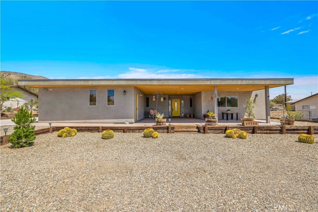 Amazing New Price! Must-See Modern Home in Desirable Morongo Valley with Paid Solar! Set against the beautiful backdrop of Morongo Valley and surrounding mountain views with snow-capped San Jacinto in the distance, this gorgeous Home with its Elevated Ceilings, and Clerestory Windows is sure to capture everyone's hearts! The expansive covered patios will be a favorite gathering spot for all. A bright and cheery door welcomes you to the grand entrance. Your gaze will be automatically drawn upwards to the elevated ceilings beset with vertical skylights that further enhance the expansive open floor plan. The space is stunning! This is an entertainer’s delight! Large Kitchen Island offers additional storage, large areas for food prep, and plenty of space for great conversations. The picture windows and large sliding door offer amazing views and open onto a wide covered patio and access to the rear yard. A cozy fire pit is available for great evening gatherings. Spacious outbuilding can be used for additional storage or office space. The Primary Bedroom offers plenty of space with gorgeous, custom French Doors that lead to the covered patio. The En Suite Bathroom is also adorned with vertical skylights and custom lighting. The custom walk-in shower with lighted bench seat lends a spa-like feel. Walk-in closets are a feature in every room. The Laundry Room is conveniently located off of the Garage and near the convenient Hall Bathroom. Natural Gas has been installed in the Home for an alternate source for cooking and clothes drying. A complete home water softener and filtration system is a bonus for all. The huge Three-Car Garage is what everyone dreams of for their New Home! Full RV hookups, including dump have been included and the Drive-thru Gate adds ease and security. Large Awning Post has been installed for the future owner, too! Here is the Home of your dreams! Conveniently Located between the High Desert and the Lower Desert, for an easy commute without the hustle and bustle of a crowded City. Approximately 10 miles to I-10 off of Hwy 62 which places you in Palm Springs in less than 15 minutes. Only 10 miles to Yucca Valley that offers great, affordable Shopping and Restaurants, with Pioneertown, and Joshua Tree a few minutes away for evening or daytime entertainment. Schedule a viewing today! Showings are by Appointment Only.