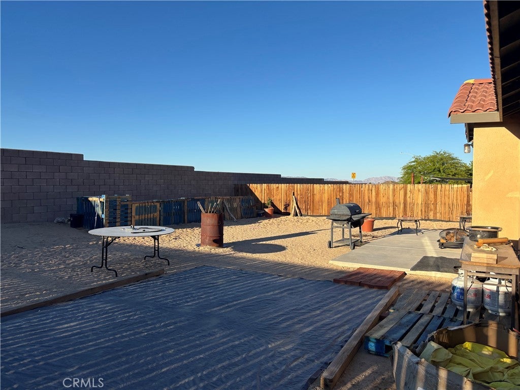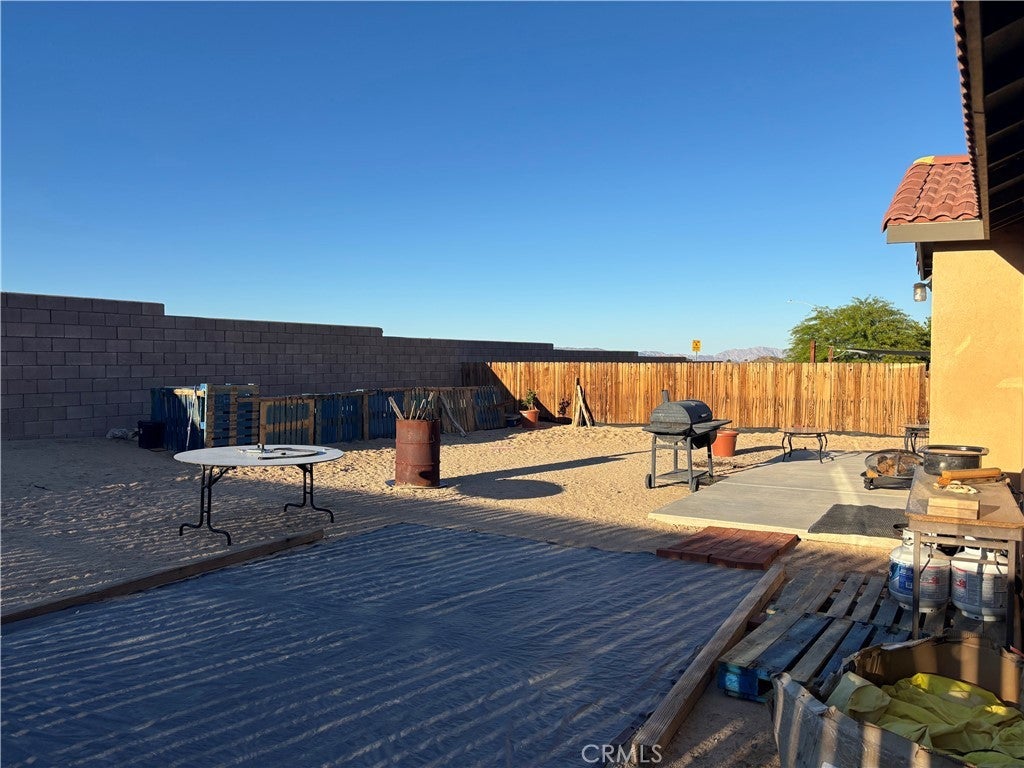 Very nice 3 bedroom, 2 full bath home with a bonus room that can be used as office, den, studio or other. As you enter the home you are greeted with an open floor plan that flows from the living area to dining area with great light and then to a gallery kitchen which is well appointed with a large pantry, gas stove and a dishwasher. There is a bonus room on the front of the home and three additional bedrooms set into a really nice layout. The primary bedroom features not one but two walk in closets, a glass slider to the back yard and an ensuite bathroom. The laundry area is in the interior of the home as well. A two car garage, a well manicured front yard with a nice covered porch and a large back yard enclosed with block walls for privacy complete the property. The home is cooled with central air conditioning and kept warm with central heat or enjoy the nice fireplace in the living room. The city of 29 Palms is growing with new businesses including a resurgence in the downtown area with a new city center named Freedom Plaza which hosts events, a weekly farmers market and a cultural visitors center featuring history of the area. Great restaurants like The Grnd Squirrel, Kitchen of the Desert and the newest 29 Palms Brewery are all near by. The home is also a great jump off point to area destinations. The main entrance to Joshua Tree National Park is only 8 miles from the home. The 29 Palms Marine Corps base is less than 8 miles away. Downtown Joshua Tree is less than 15 minutes down the road. Big Bear Lake and it's mountain ski resorts are only about an hour and 15 minute drive and Palms Springs is less than an hour away.