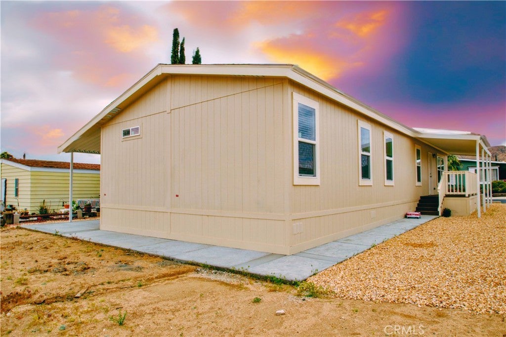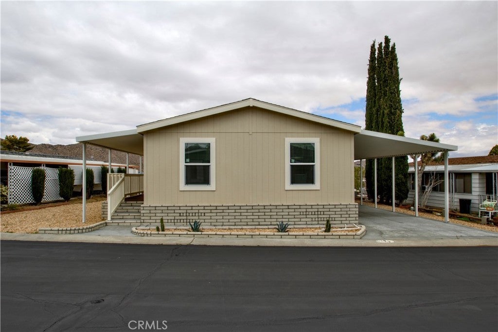 Don't miss this gorgeous, recently built mobile home that offers the perfect blend of modern comfort and timeless design! Nestled in the peaceful Gates of Spain mobile home park, this spacious unit features brand new appliances, double pane windows, three bedrooms, two bathrooms, washer/dryer hookups, boasts a bright, spacious layout with a like-new feel throughout. This unit is perfect for someone interested in settling into a quiet, tranquil 55+ community. Weather you are looking forward to relaxing on your porch surrounded by blue skies, taking a quick drive to the local shops, or going for a hike, this home not only has it all, it is centrally located in the heart of Yucca Valley offering easy access to everything you need for comfortable daily living. | Seller is offering a concession of $775 space rent for the first year. Rent will increase to $875 second year. Rent will increase to market rate after third year-inquire with park management for details. Seller financing available!
