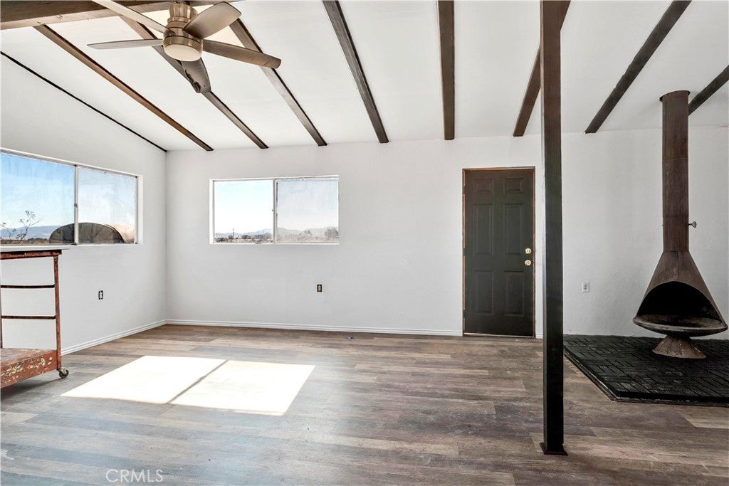 Joshua Tree back entrance location - Ultimate Wonder Valley private Rec Cabin with simple luxury in the High Desert on five expansive acres. Professionally renovated - this spectacular tiny home features an airy living and dining space with beamed ceiling with custom framed doors and windows, Morso WB fireplace and a generous living area. Brand new double lined stucco on the outside and fully insulated detailed craftsman finished work on the inside. NEW ROOF just installed and 20 foot beamed ceiling at the peak. Upgraded Electric Panel. The Power is on to this house and previously had hauled water. Bathroom and Kitchen framed will need to be finalized. Area is booming with Artists, New Restaurants, and Hip People of all ages. Wonder Valley is less than 15 minutes from the entrance to Joshua Tree National Park! As you approach the property, 360 degree panoramic views surround you, stretching from JTNP to the south to Mojave Trails National Monument to the North. The charming facade with its stonework accents welcomes you to explore further w- 5 private acres, you have plenty of room to expand your dreams. There are fewer and fewer of these unique Rec Cabins that haven’t be bought up by big land companies - don't miss out on your chance to own your personalized hi-desert hideaway. Move in ready. Pictures say it all. Offered $79,900 Firm CASH.
