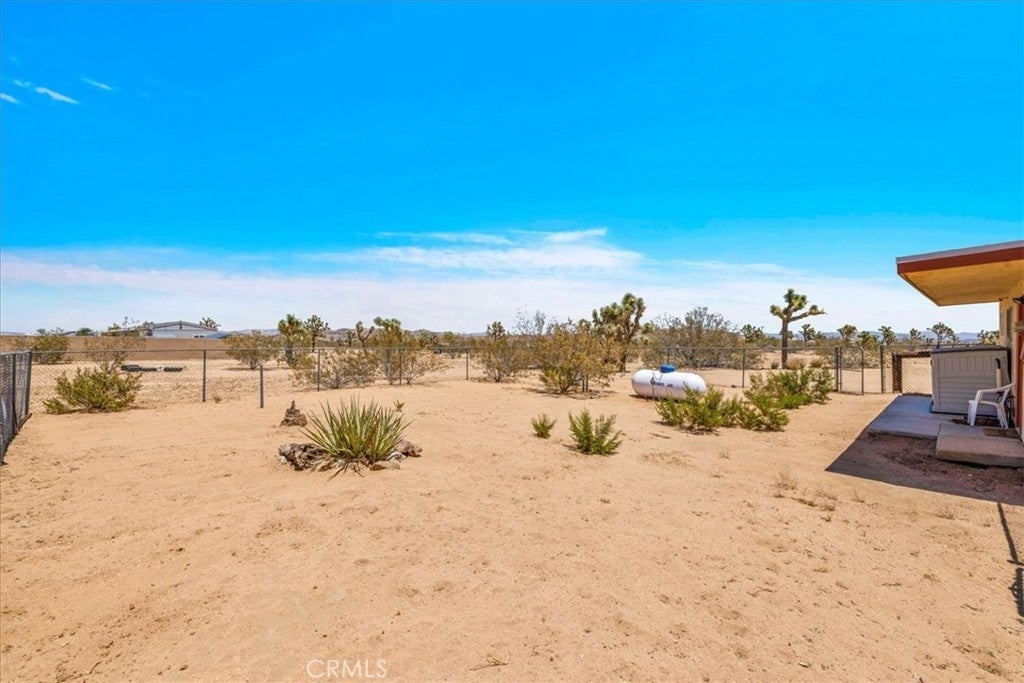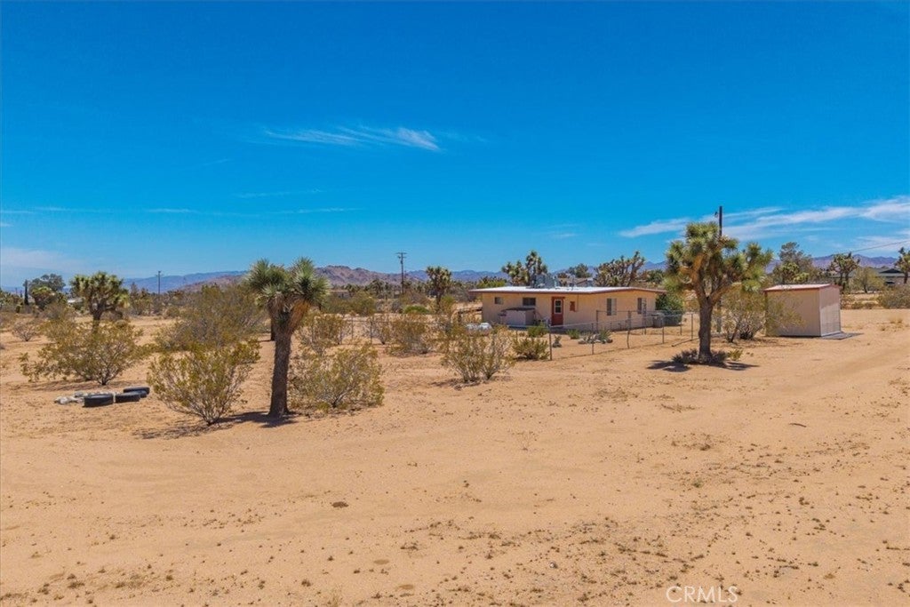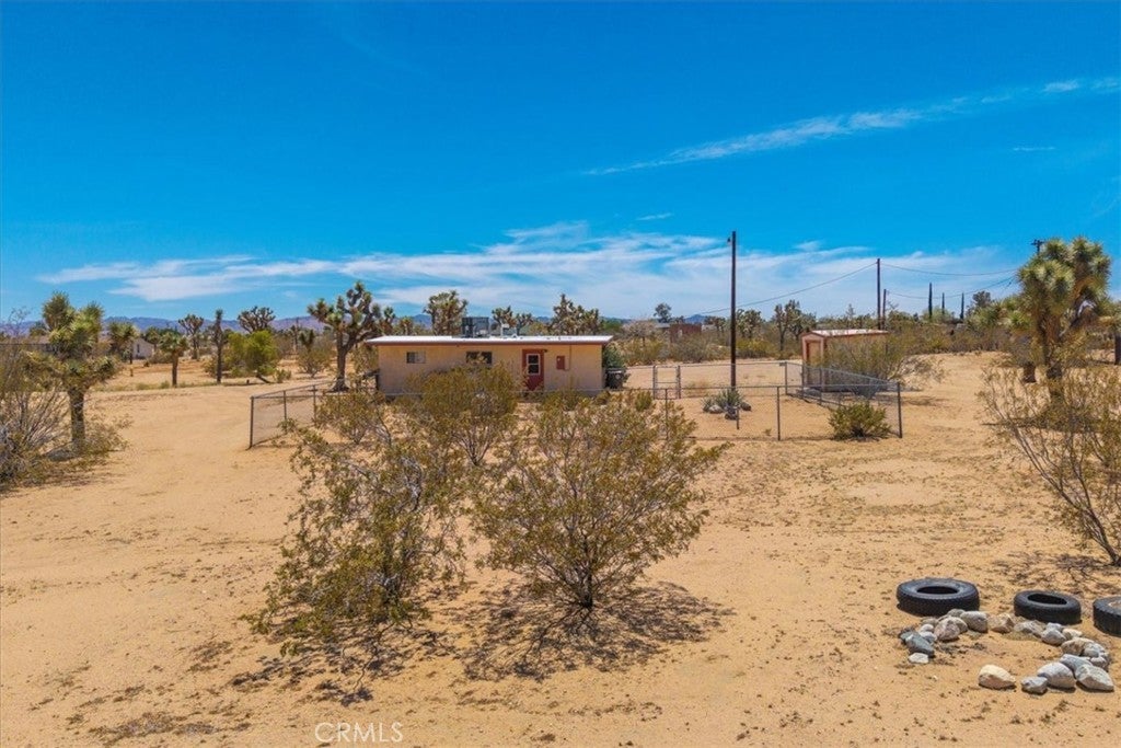 Charming 2-Bedroom Retreat on 2 Acres in the Heart of Hi-Desert! Escape to tranquility with this delightful 2-bedroom, 1-bathroom home situated on an expansive 2-acre lot in the serene Yucca Mesa area of the Hi-Desert. This property is perfect for those seeking a primary residence, a second home, or investment opportunity for short-term rentals! As you approach the home, you’ll be greeted by breathtaking views of the desert landscape, majestic mountains, and unique desert flora. The drive to your new oasis immerses you in the beauty of the Hi-Desert, providing a calming sense of relief as you leave the hustle and bustle of the city behind. Step inside to discover a cozy living area featuring a wood-burning stove, perfect for keeping warm during those chilly desert nights. The interior boasts tile flooring and dual-pane windows, ensuring both comfort and energy efficiency throughout the year. The kitchen is ready to go, equipped with ample cabinetry, stunning granite countertops, a stove, and a refrigerator, making meal preparation a breeze. Retreat to the well-appointed bathroom, which includes a full bathtub, shower, and vanity! The enclosed backyard area is a true highlight, providing a safe space for pets to roam freely. It's also an ideal setting for hosting barbecues and outdoor gatherings or simply enjoying phenomenal stargazing under the clear desert skies in the evenings. Located just a short drive from the Sand to Snow National Monument, Joshua Tree National Park, and the vibrant Joshua Tree Village, this home offers endless opportunities for adventure, whether you’re into hiking, off-roading, or simply soaking in the stunning natural beauty around you. Don’t miss your chance to own this charming desert retreat! Schedule your private showing today and embrace the peaceful lifestyle that awaits you in the Hi-Desert!