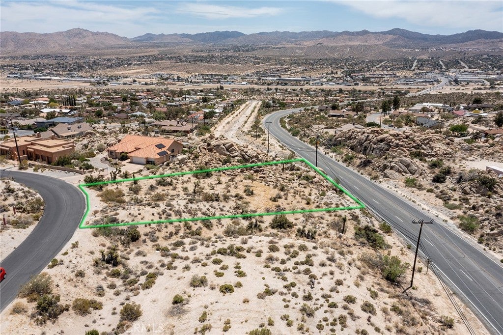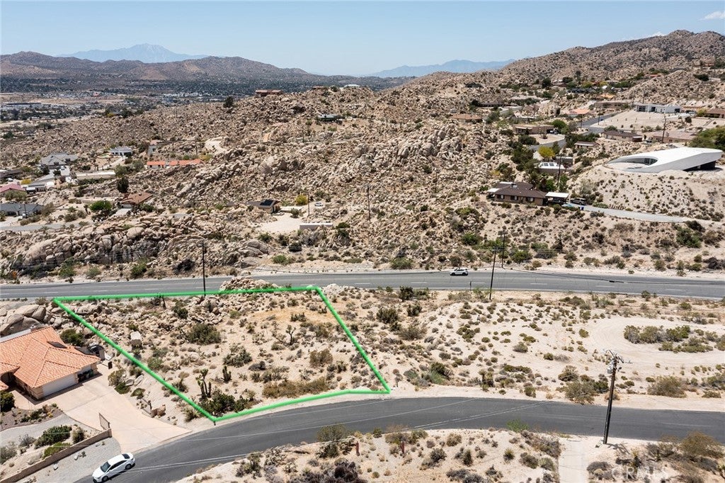 WESTERN HILLS PARCEL: Overlooking Yucca Valley, with utilities (water & electric) in the street. Prestigious hillside location. Convenient to dining and shopping. Property already had an assigned street number. Note: Green lines demarcating boundaries in pictures are an approximate representation of lot lines.