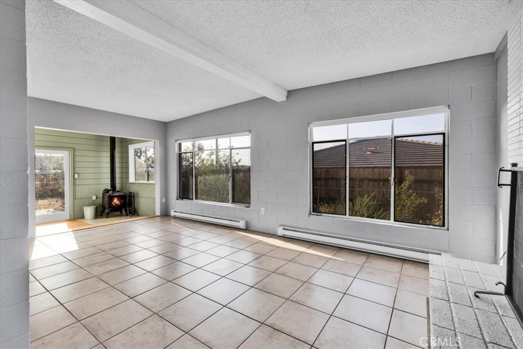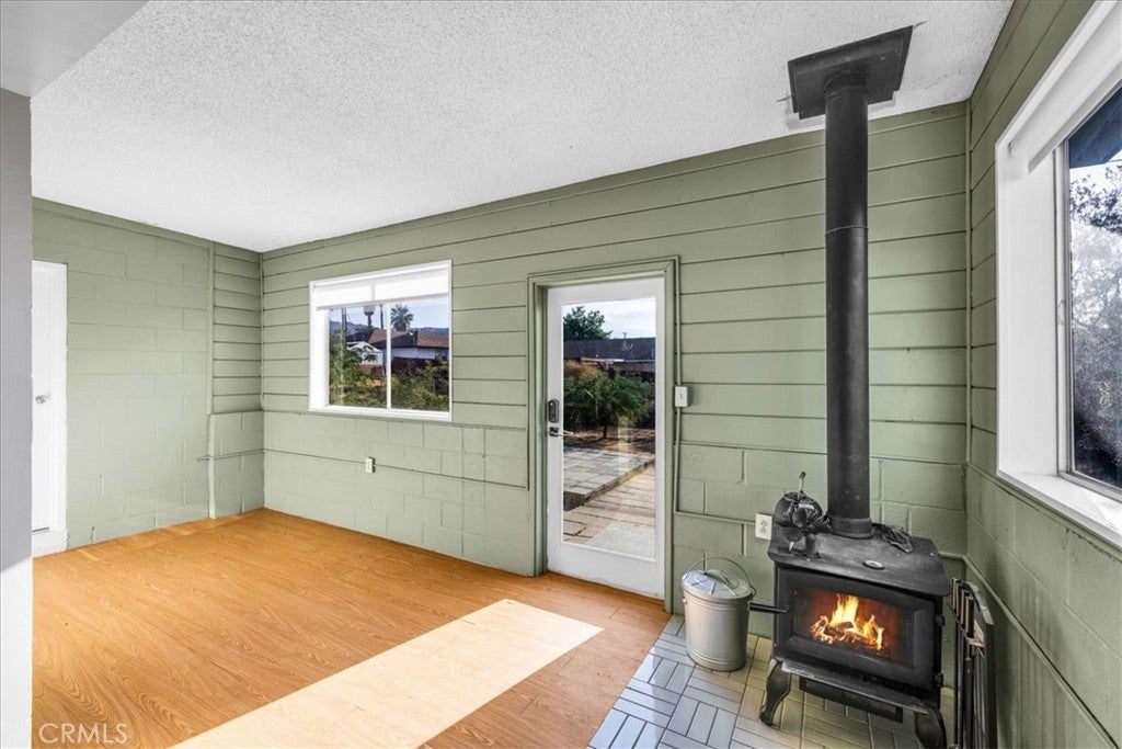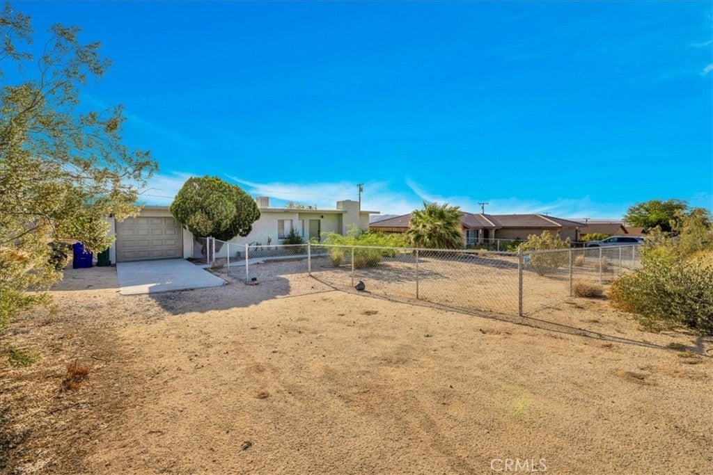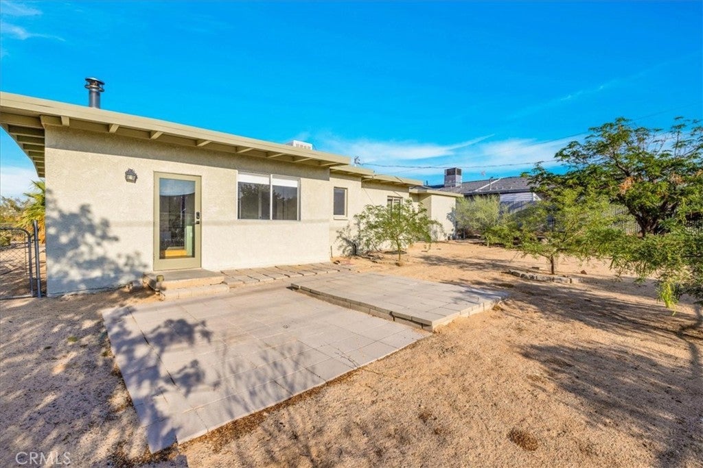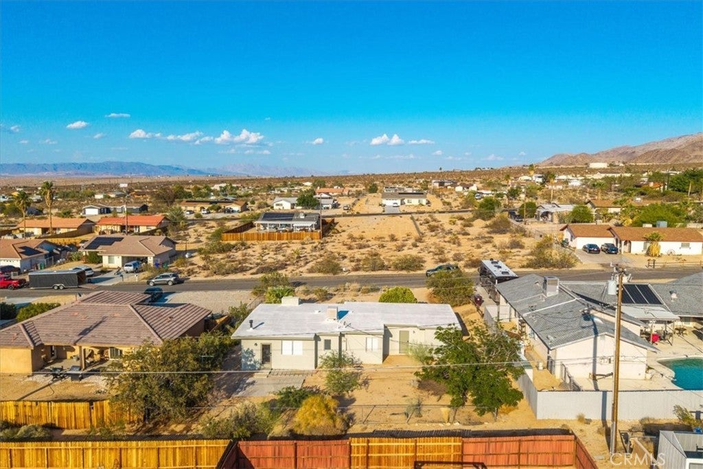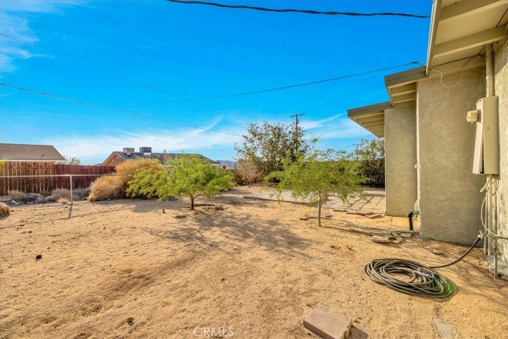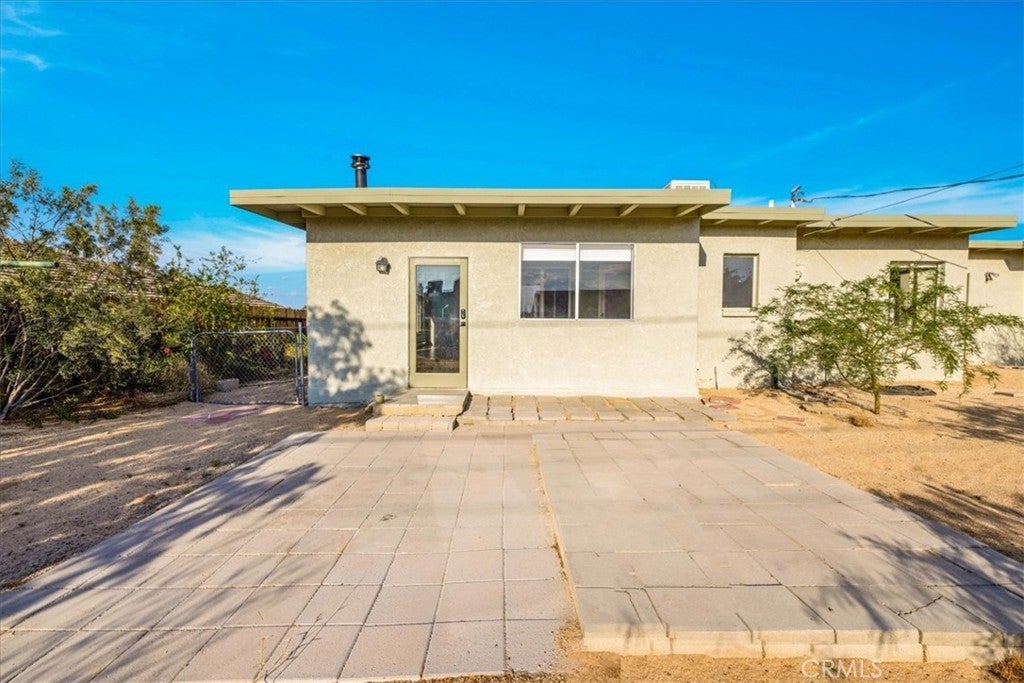 Sturdy cinder block construction set in the lovely Indian Cove neighborhood of 29 Palms. This meticulously maintained and updated two bedroom, one bath mid-century modern home blends vintage charm with modern upgrades. Located minutes from Indian Cove Market, this home offers a peaceful desert setting with great neighbors, ideal for stargazing, outdoor adventures with easy access to Joshua Tree National Park and 29 Palms amenities. Built from strong and energy efficient cinder blocks, the open-concept living area and kitchen flow seamlessly into the private bedrooms or outside to the charming backyard. This features original metal doors and classic casement windows to create a distinctive desert aesthetic. And so many more features: The solid hickory wood floors that grace the bedrooms were installed in 2019, while vinyl flooring enhances the den and built-in porch and the linen/coat closet in the hallway provides additional storage. The kitchen boasts butcher block countertops, a stainless steel sink, a 23 cu ft stainless steel refrigerator (new 2021), a stainless steel dishwasher (new 2022), a reverse osmosis water purifier with filters replaced in April 2025, and a new garbage disposal (2020-2021). A striking brick fireplace and a new wood stove (2020) create a cozy ambiance. All interior light fixtures are also elegantly updated. Want more? This home features a new spray foam roof (Fall 2024) with a 10-year transferable warranty! The exterior was freshly painted in 2025. The well-fenced front and back yards are replete with low-maintenance native plants and a clothesline for eco-friendly drying. An oversized one-car garage with a new motor/opener (2021) offers ample storage and hobby space. The new, front, exterior door has key and code access, a new locking mailbox (2021), and a new Schoolhouse Electric exterior light fixture by the front door elevates the home’s curb appeal. Additional upgrades include a new evaporative cooler (2023) for efficient cooling and a new hot water heater (December 2024). The home features in-house laundry with a dryer hookup for your desired unit. Perfect for those seeking style, comfort, and low-maintenance desert living. Schedule a showing today to experience this unique property!