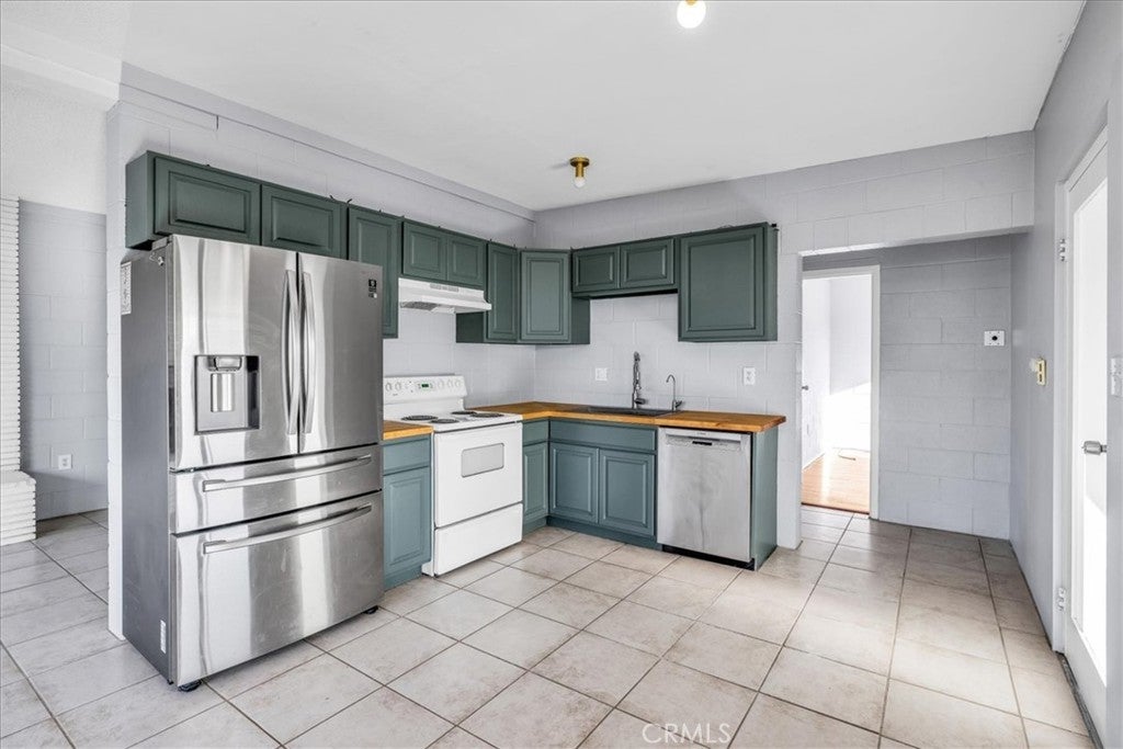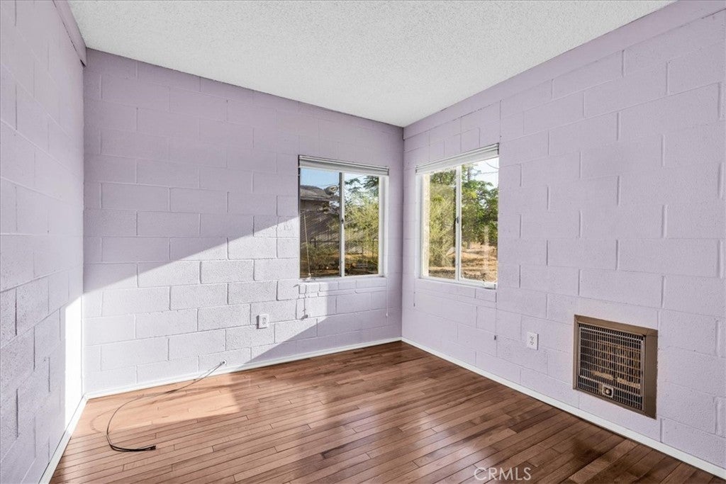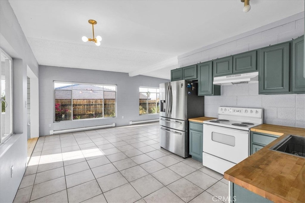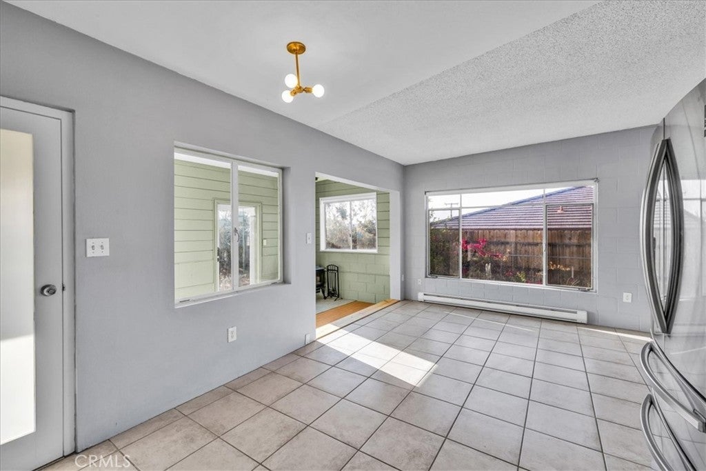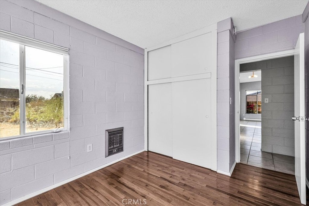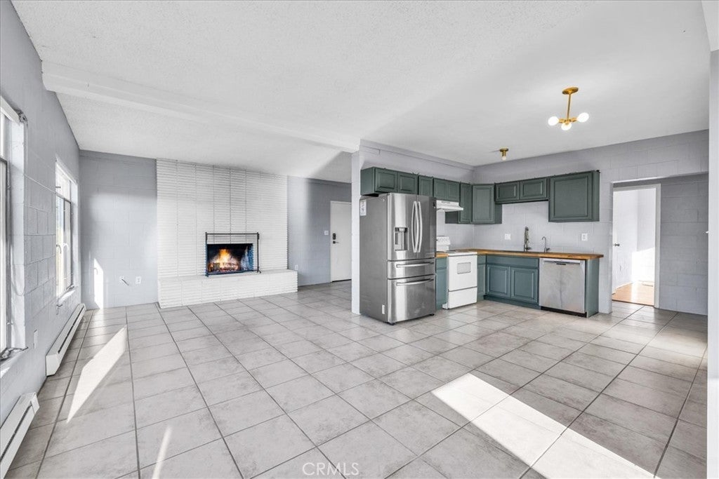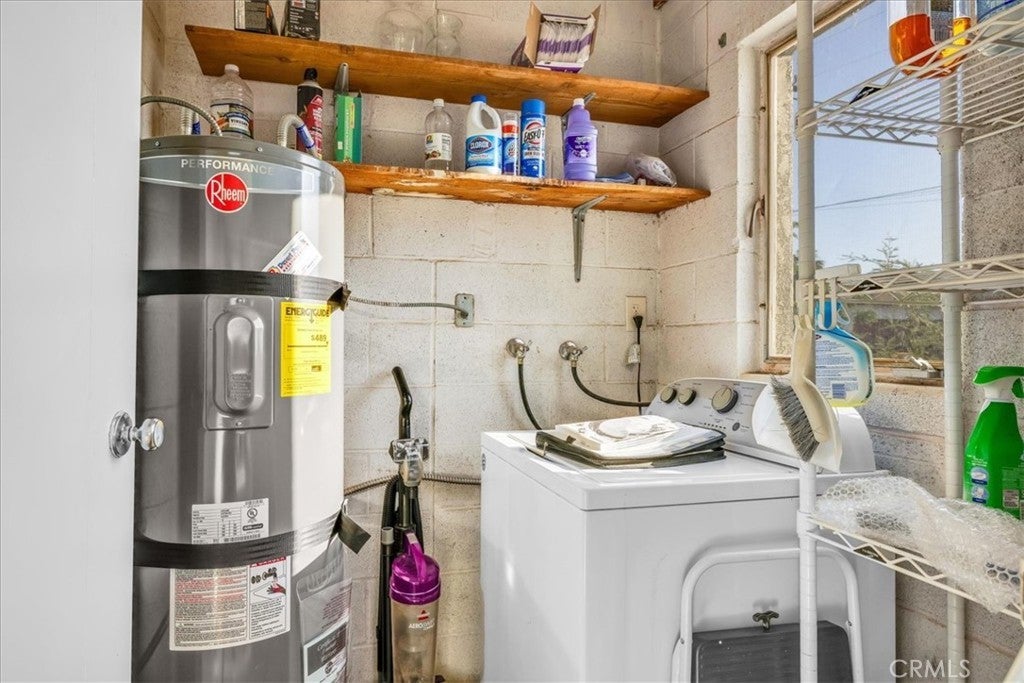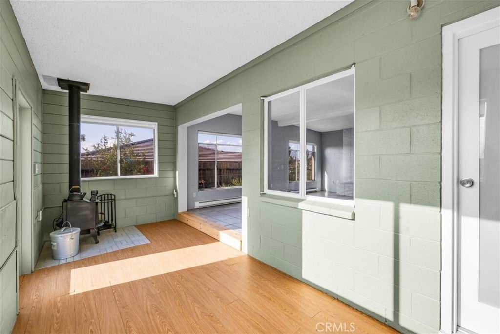 Sturdy cinder block construction set in the lovely Indian Cove neighborhood of 29 Palms. This meticulously maintained and updated two bedroom, one bath mid-century modern home blends vintage charm with modern upgrades. Located minutes from Indian Cove Market, this home offers a peaceful desert setting with great neighbors, ideal for stargazing, outdoor adventures with easy access to Joshua Tree National Park and 29 Palms amenities. Built from strong and energy efficient cinder blocks, the open-concept living area and kitchen flow seamlessly into the private bedrooms or outside to the charming backyard. This features original metal doors and classic casement windows to create a distinctive desert aesthetic. And so many more features: The solid hickory wood floors that grace the bedrooms were installed in 2019, while vinyl flooring enhances the den and built-in porch and the linen/coat closet in the hallway provides additional storage. The kitchen boasts butcher block countertops, a stainless steel sink, a 23 cu ft stainless steel refrigerator (new 2021), a stainless steel dishwasher (new 2022), a reverse osmosis water purifier with filters replaced in April 2025, and a new garbage disposal (2020-2021). A striking brick fireplace and a new wood stove (2020) create a cozy ambiance. All interior light fixtures are also elegantly updated. Want more? This home features a new spray foam roof (Fall 2024) with a 10-year transferable warranty! The exterior was freshly painted in 2025. The well-fenced front and back yards are replete with low-maintenance native plants and a clothesline for eco-friendly drying. An oversized one-car garage with a new motor/opener (2021) offers ample storage and hobby space. The new, front, exterior door has key and code access, a new locking mailbox (2021), and a new Schoolhouse Electric exterior light fixture by the front door elevates the home’s curb appeal. Additional upgrades include a new evaporative cooler (2023) for efficient cooling and a new hot water heater (December 2024). The home features in-house laundry with a dryer hookup for your desired unit. Perfect for those seeking style, comfort, and low-maintenance desert living. Schedule a showing today to experience this unique property!